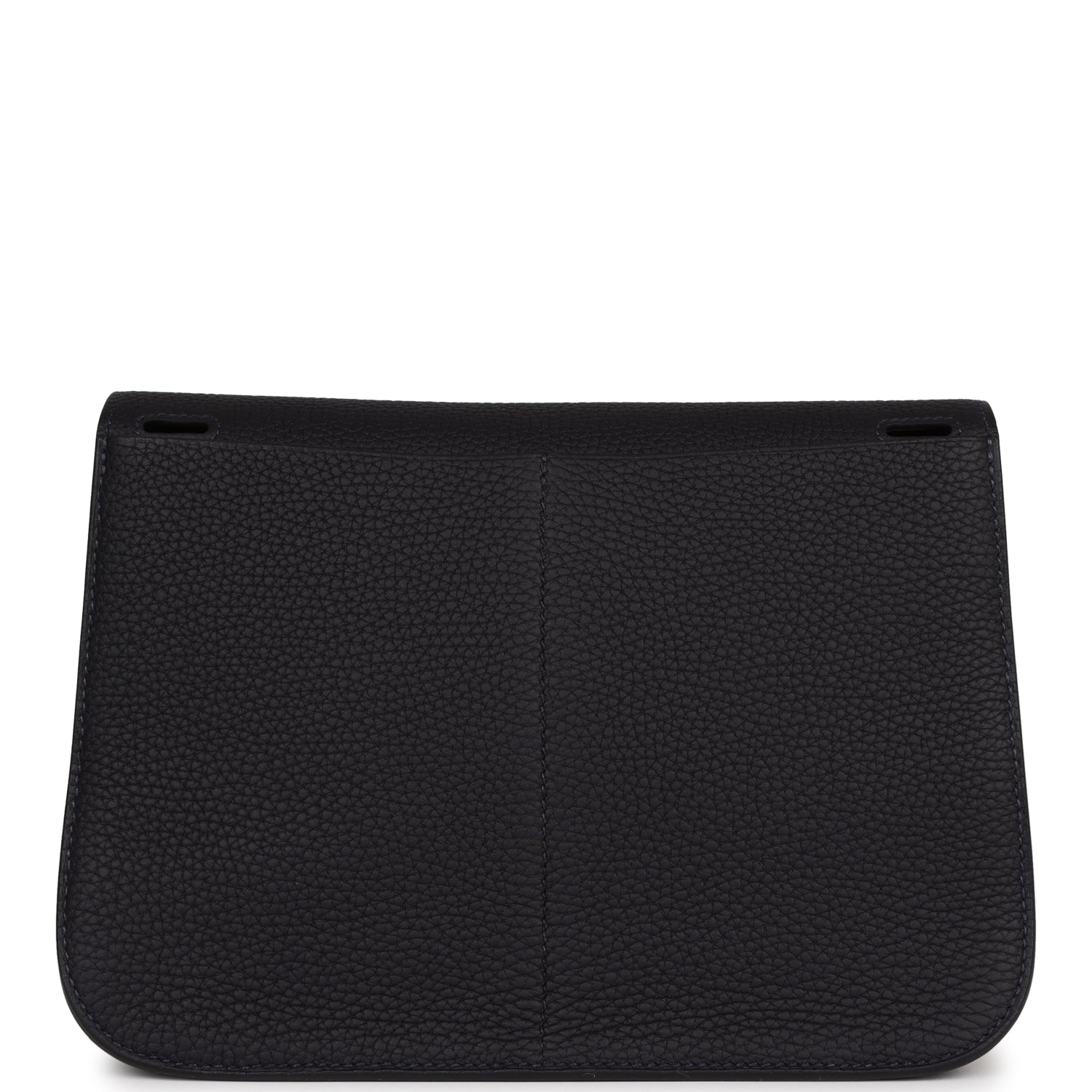 This Halzan is in Caban clemence leather with palladium hardware and has tonal stitching, front loop closure, foldable top handles, and a long crossbody strap for multistyle wear.
