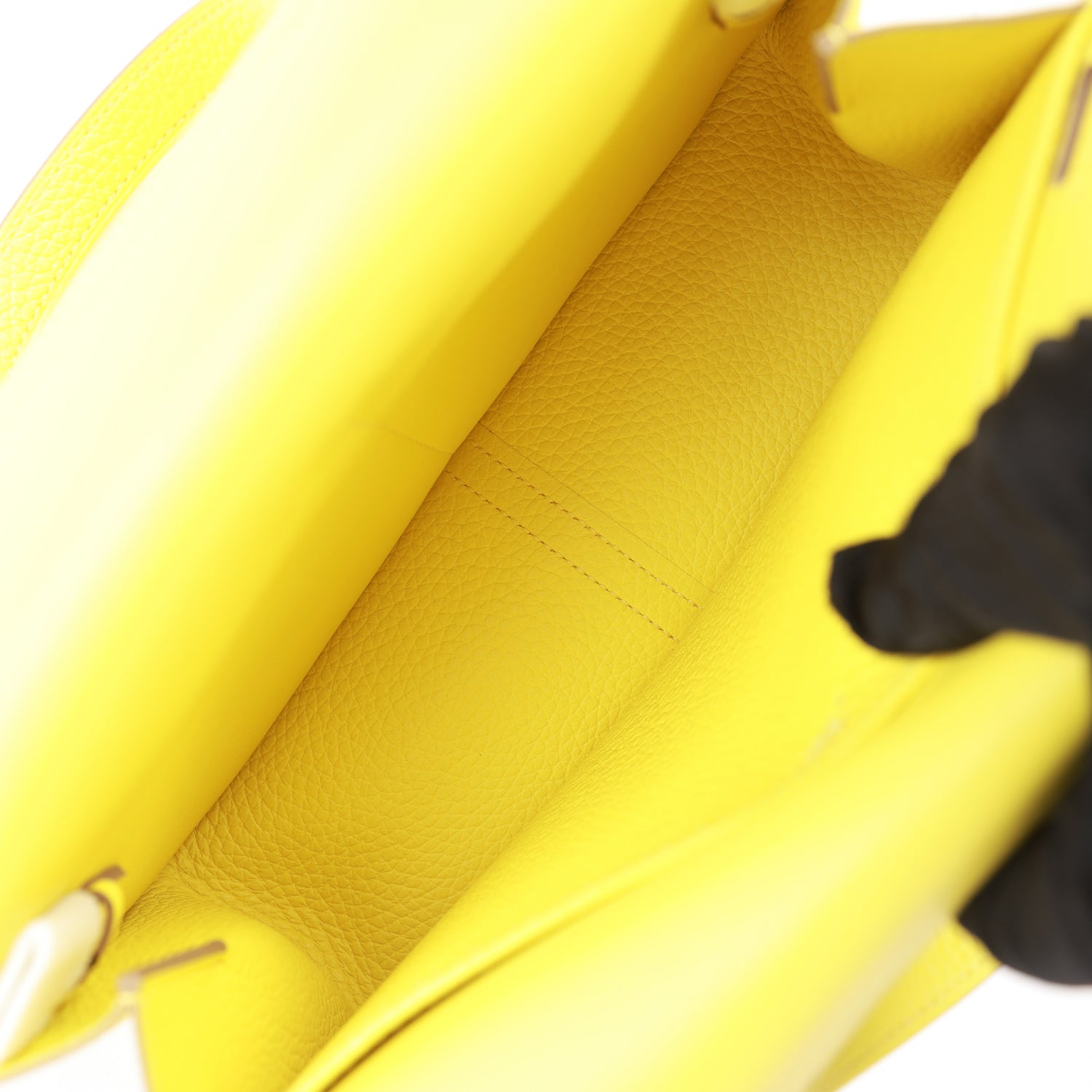 This Halzan is in Lime clemence leather with palladium hardware and has tonal stitching, front loop closure, foldabled top handles, long cross body strap for multistyle wear.