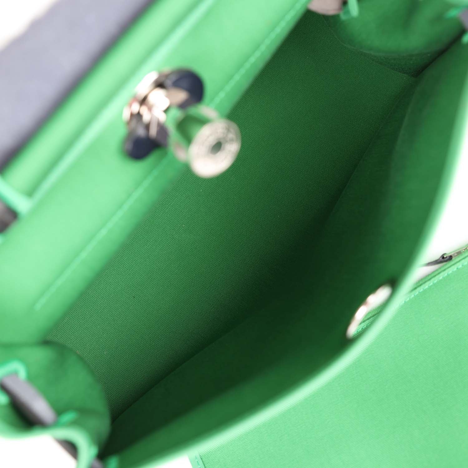 This Herbag Zip PM is of Bamboo Toile H and Bleu Indigo Vache Hunter leather with palladium hardware and has tonal stitching, front flap, two straps with center clou de selle closure, clochette with lock and two keys, back zip pocket, single rolled handle and shoulder strap.