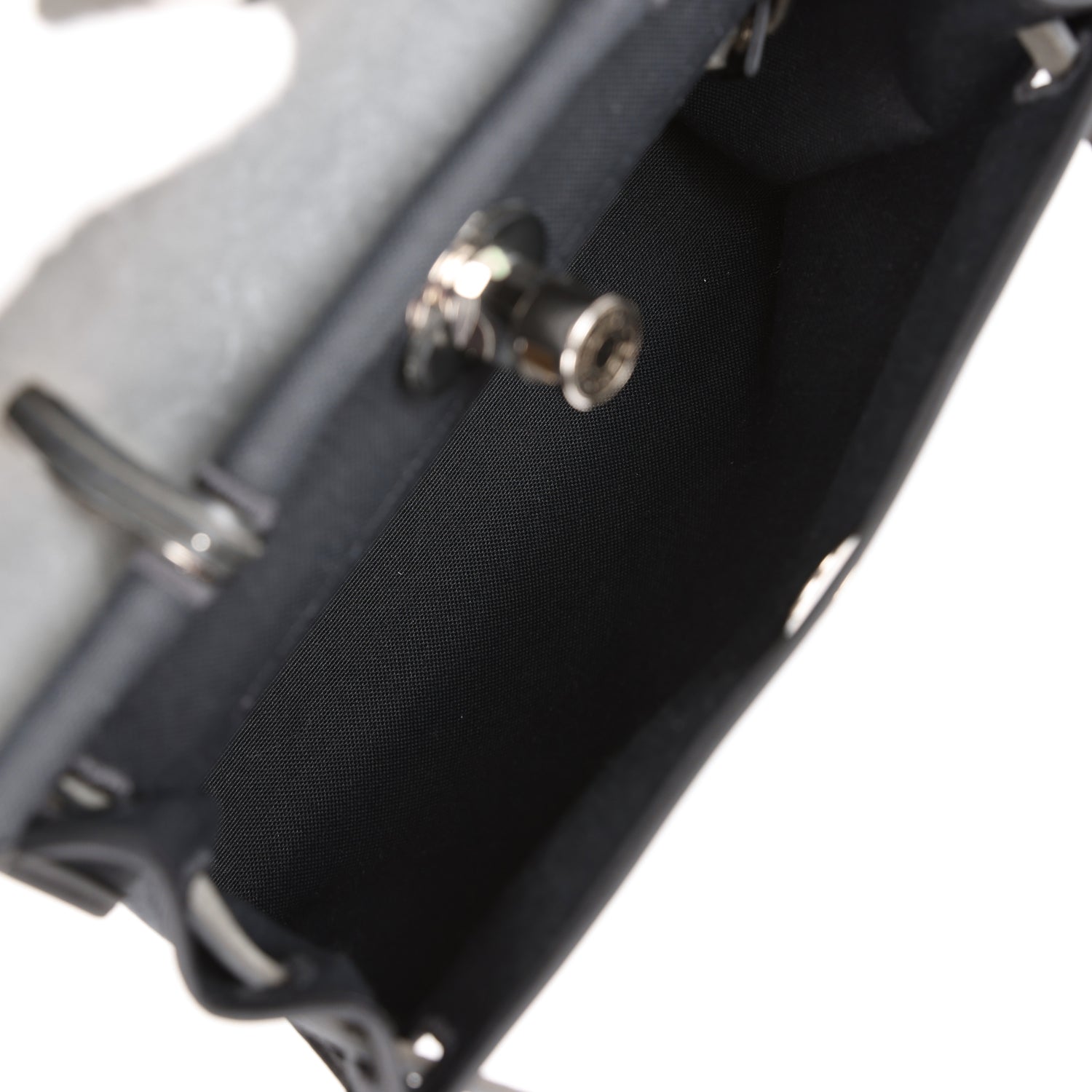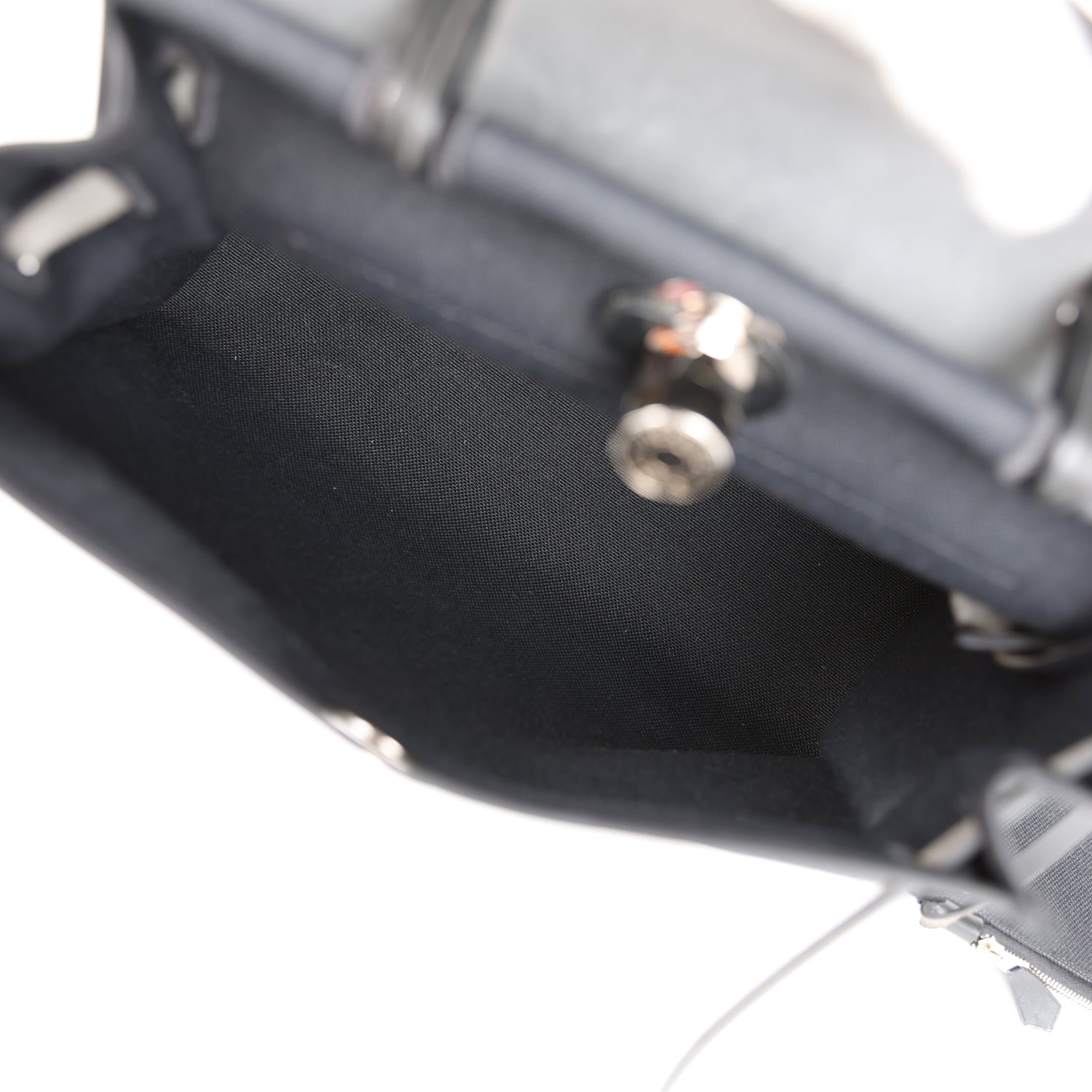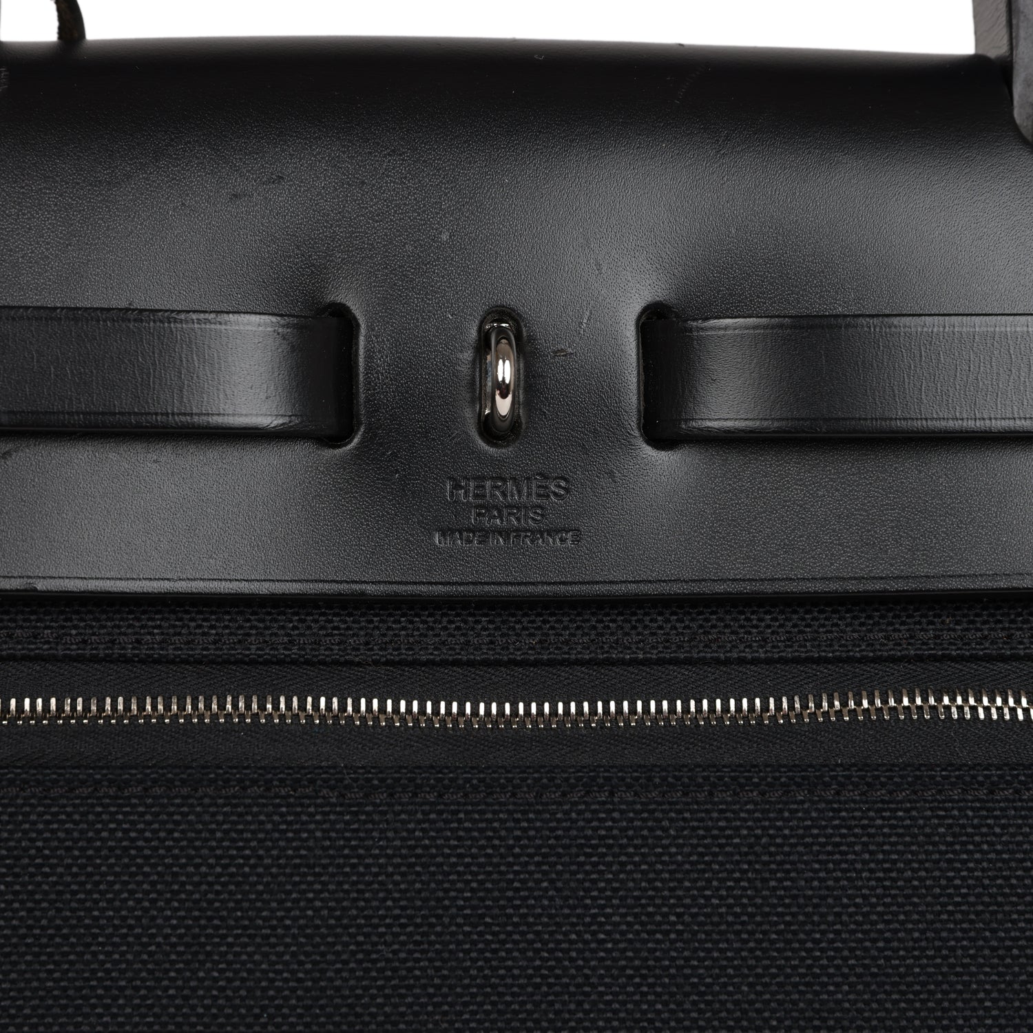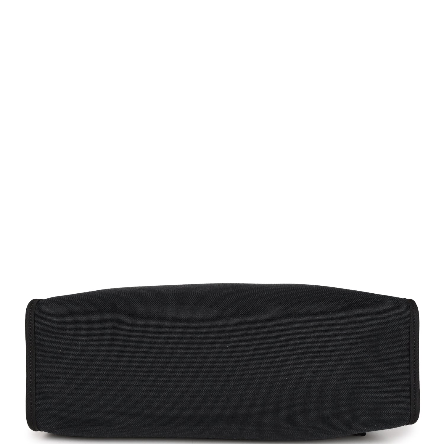 This Herbag Zip PM is of Black Toile H and Berline Hunter leather with palladium hardware and has tonal stitching, front flap, two straps with center clou de selle closure, clochette with lock and two keys, back zip pocket, single rolled handle and shoulder strap.