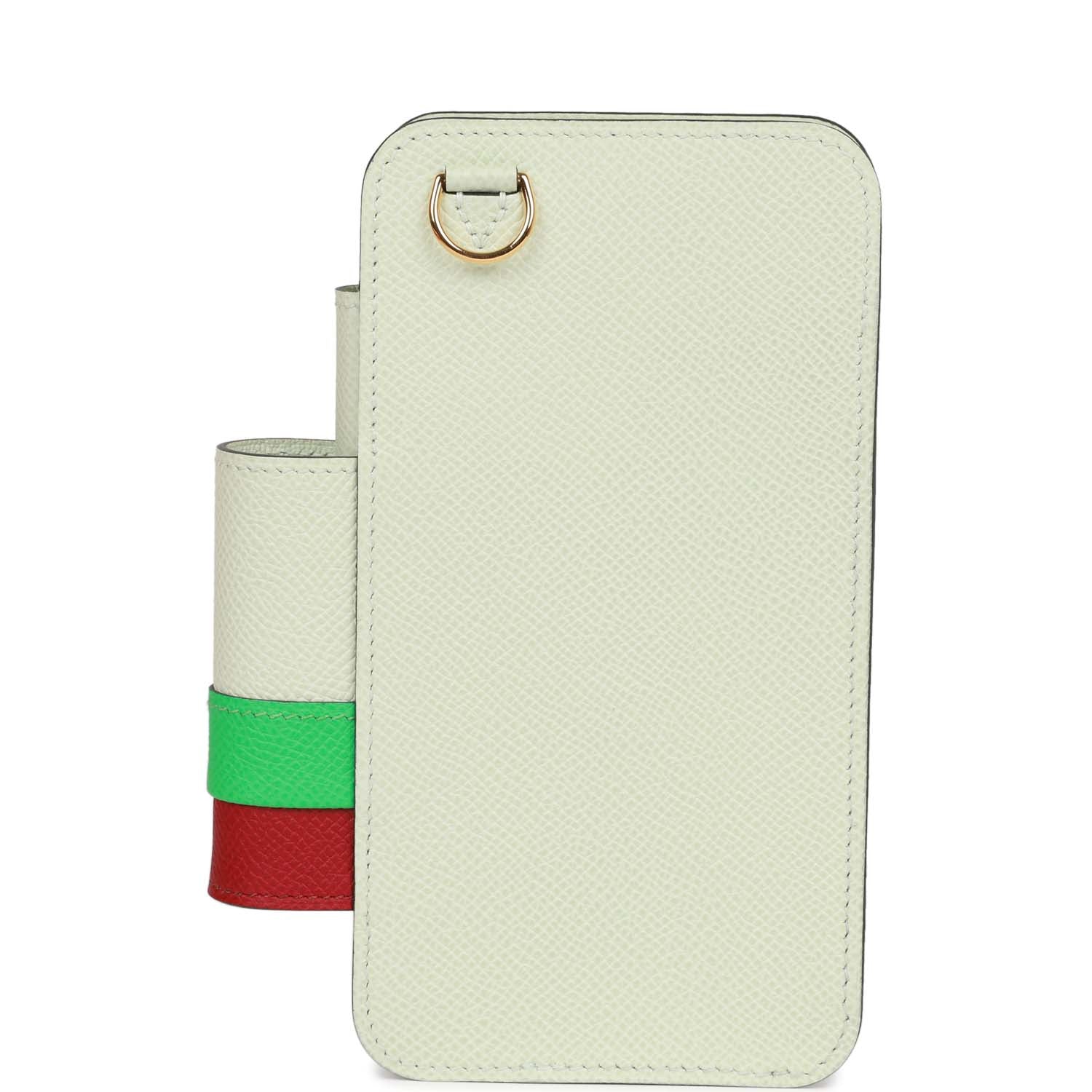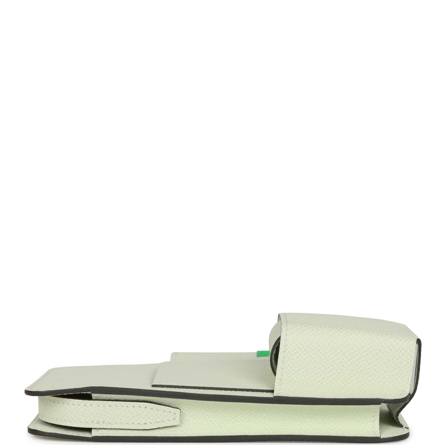 This Hermesaway is in Vert Fizz epsom leather with gold hardware and has tonal stitching, an airpods case, adjustable cross body strap, lipstick holder, and one credit card slot.
