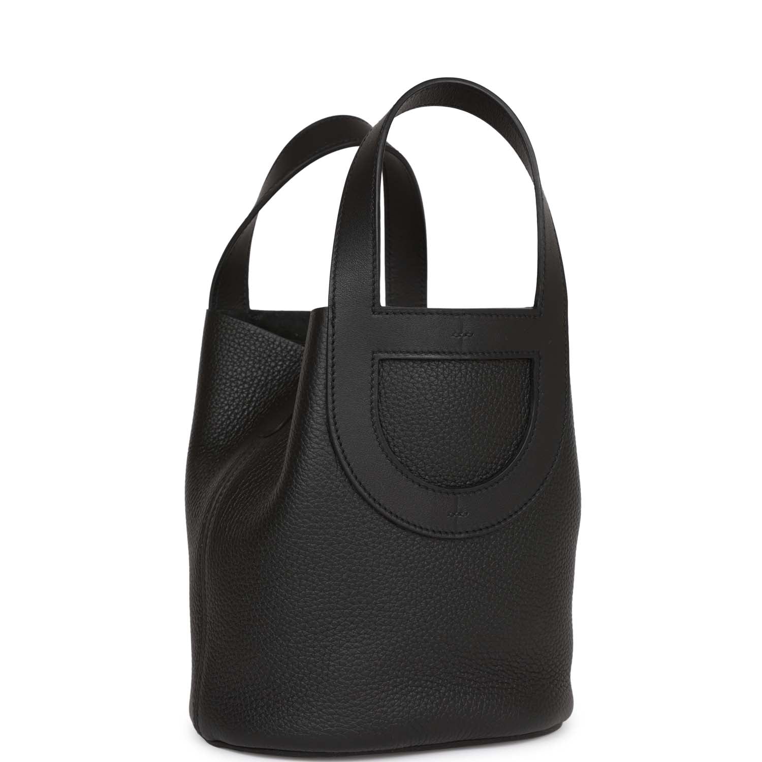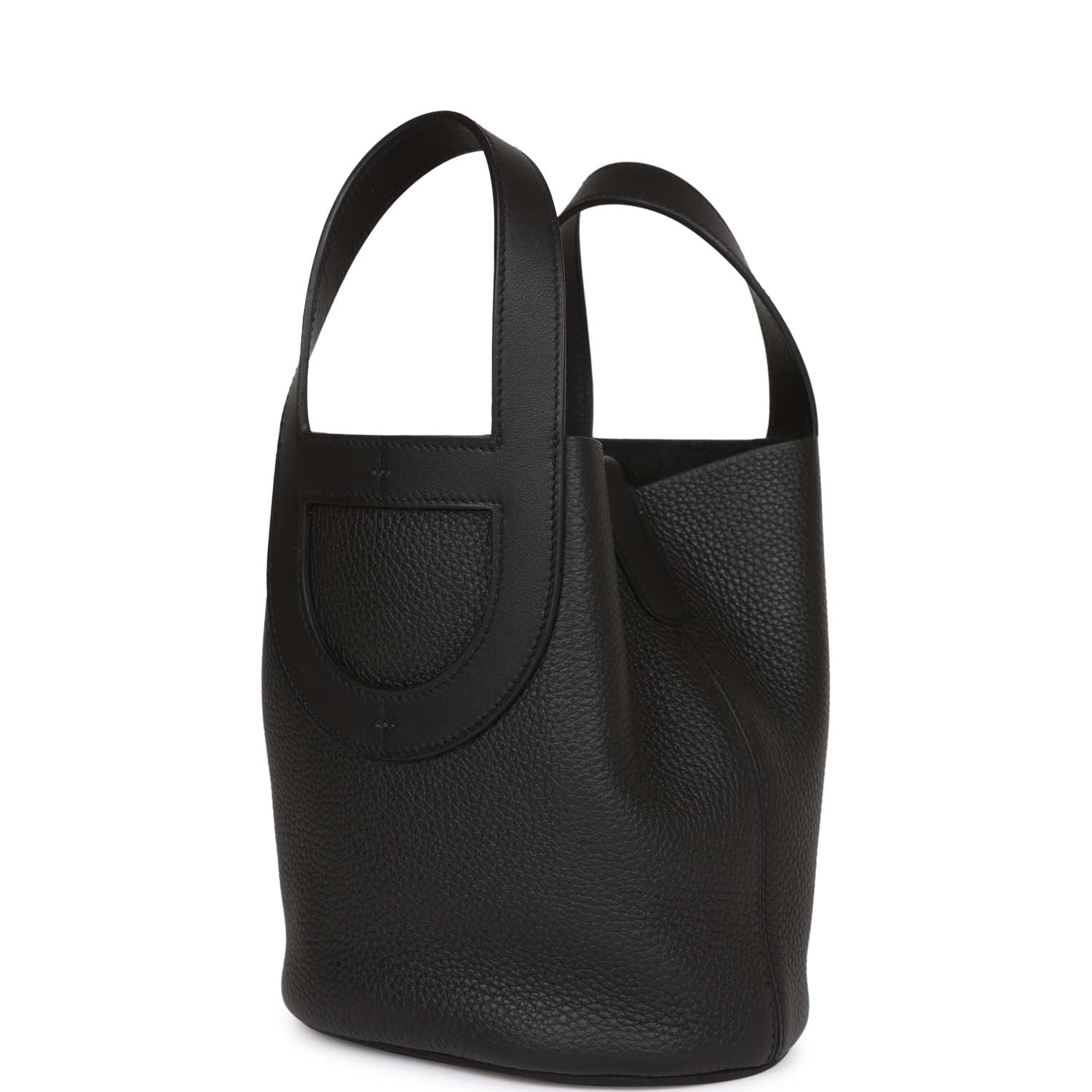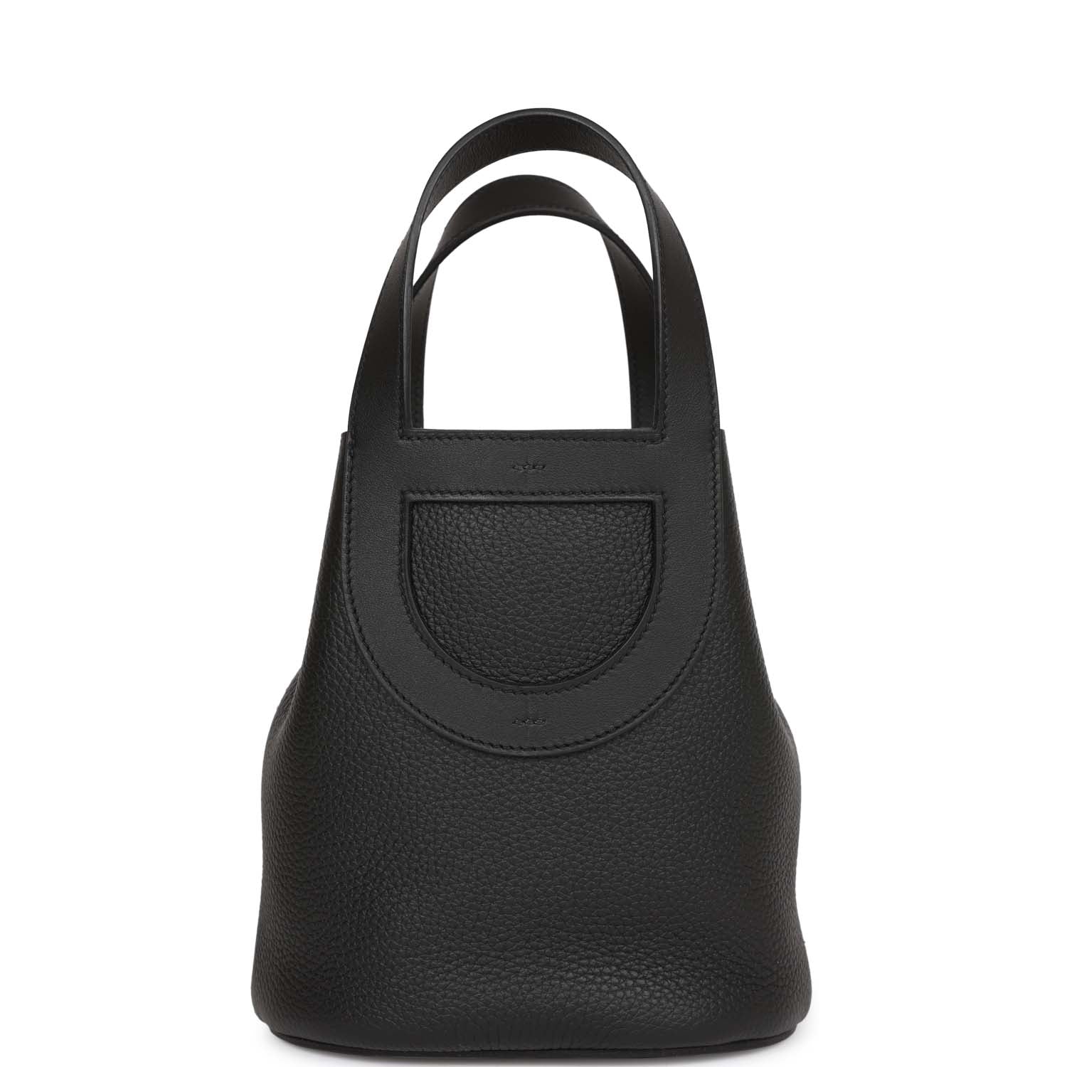 This In-The-Loop is in Black clemence and swift leather with gold hardware and has tonal stitching with two top handles.