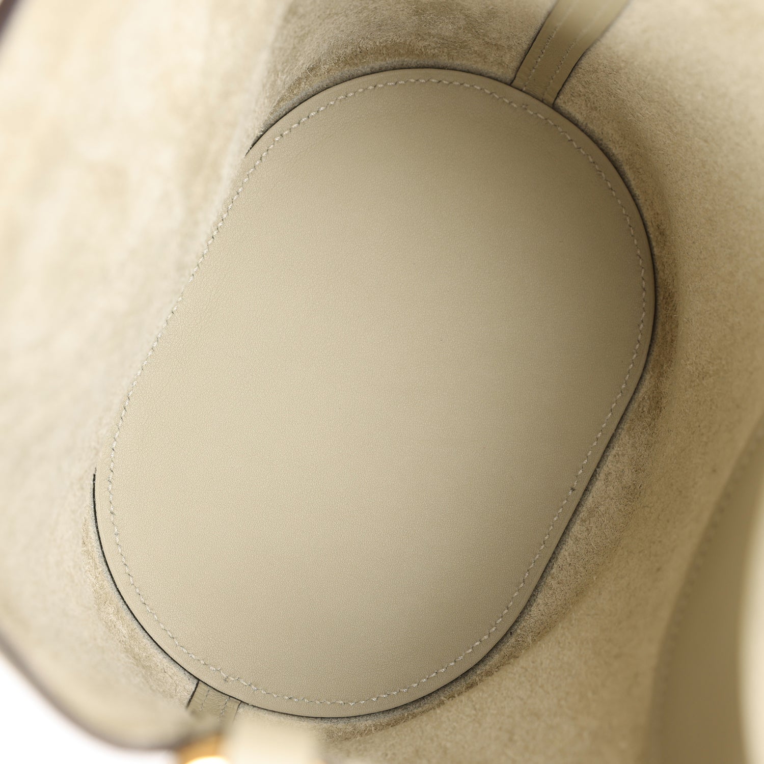 This In-The-Loop is in Sauge clemence and swift leather with gold hardware and has tonal stitching with two top handles.