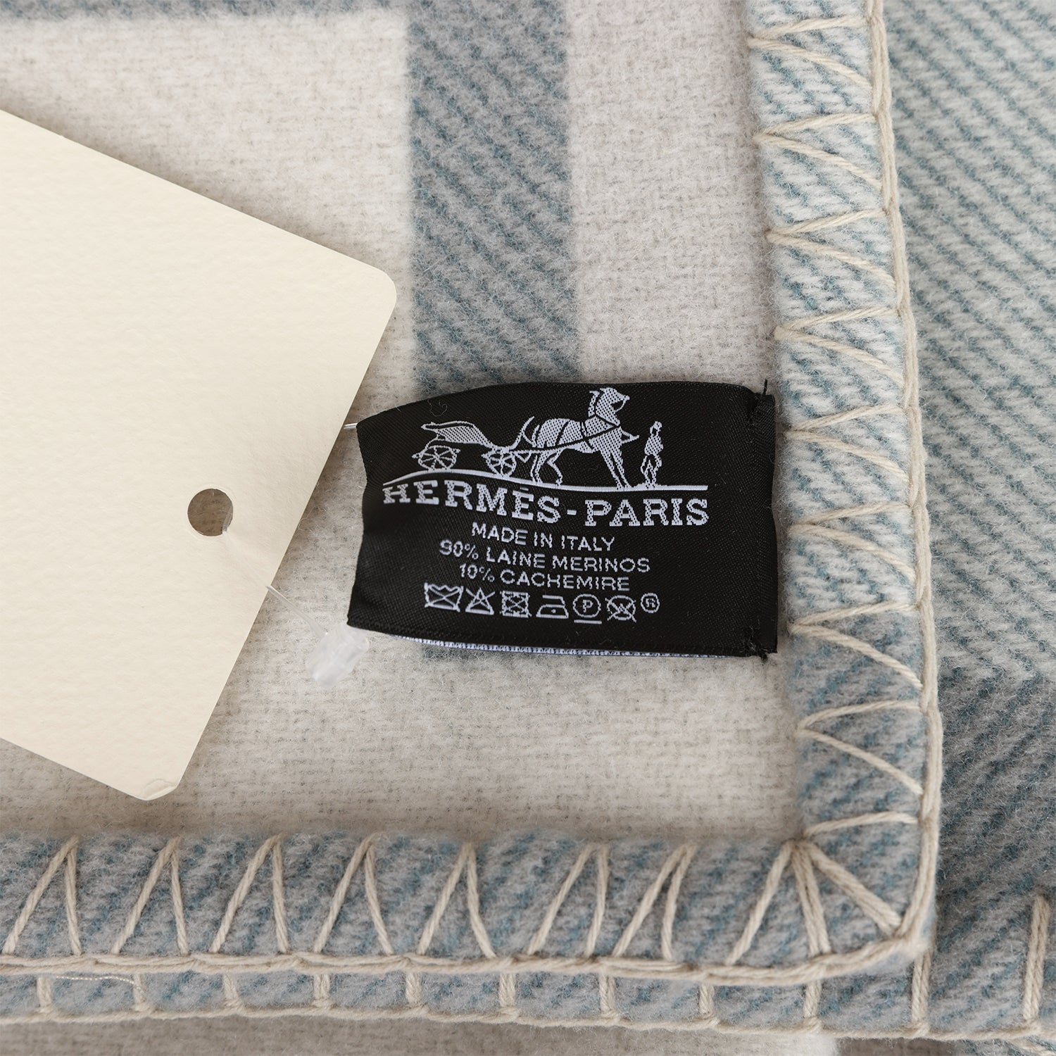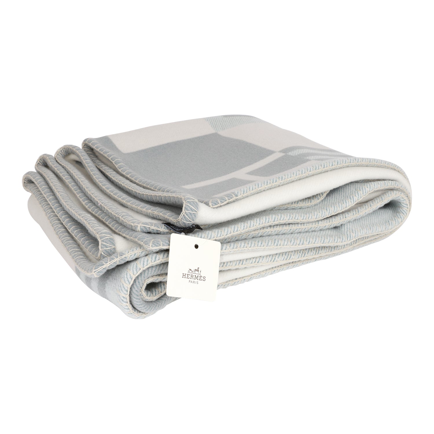 Hermes Ithaque Signature H blanket in gris and perle made of 90% merino wool and 10% cashmere.