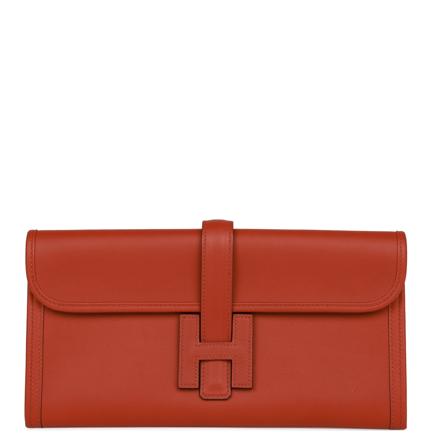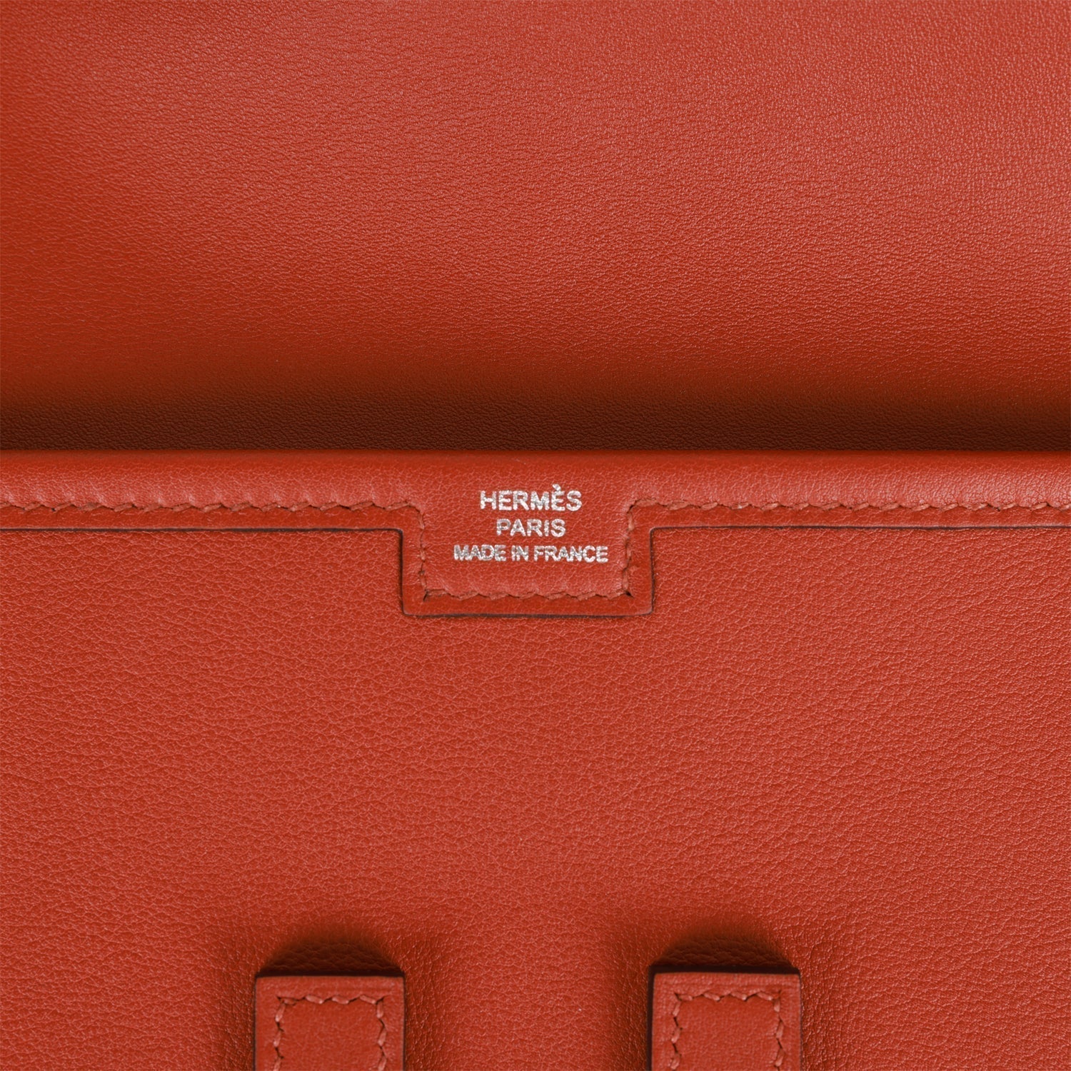 This Jige Elan is in Cuivre swift leather and features tonal stitching and a front "H" pullover tab closure.