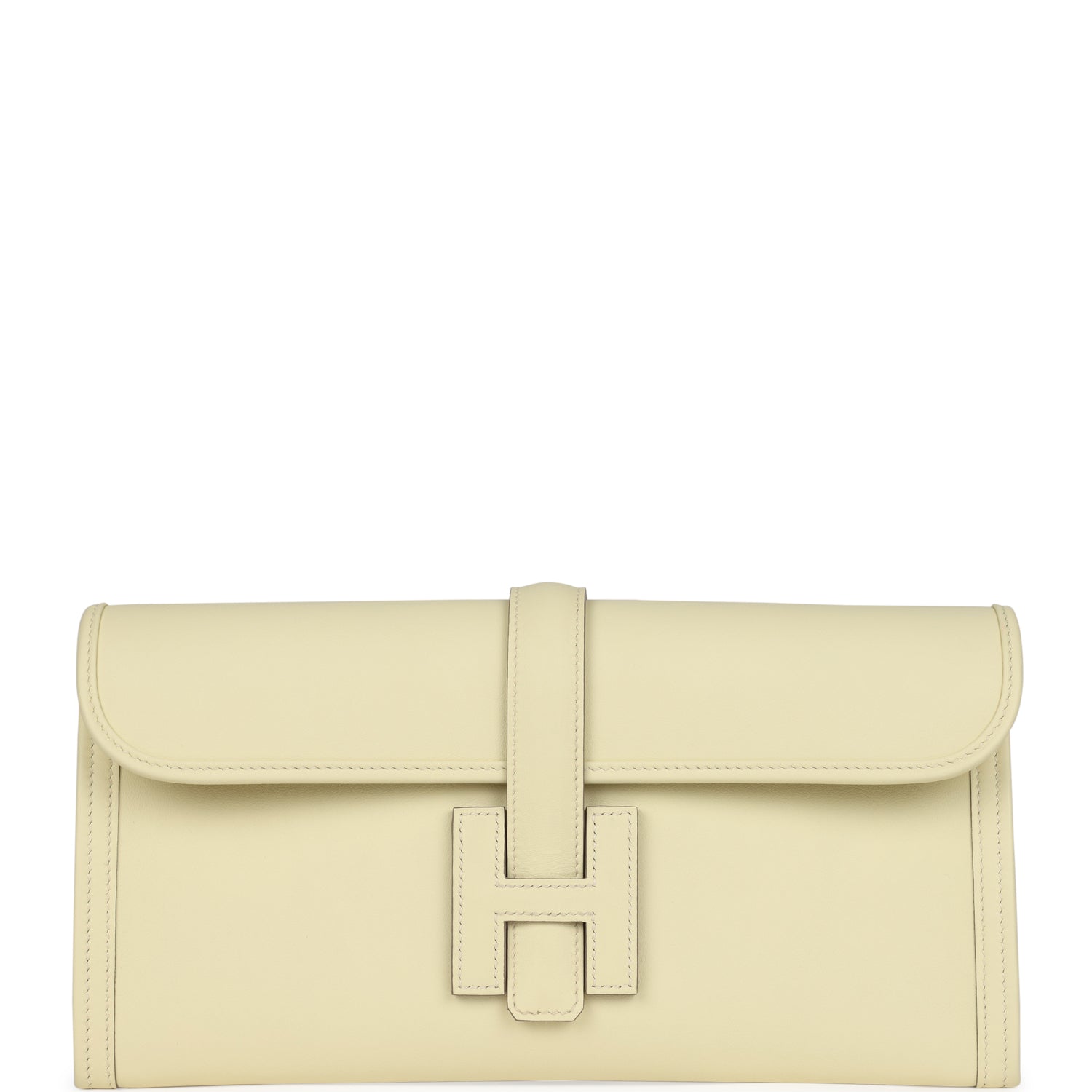 This Jige Elan 29 is in Jaune Milton swift leather and features tonal stitching and a front "H" pullover tab closure.