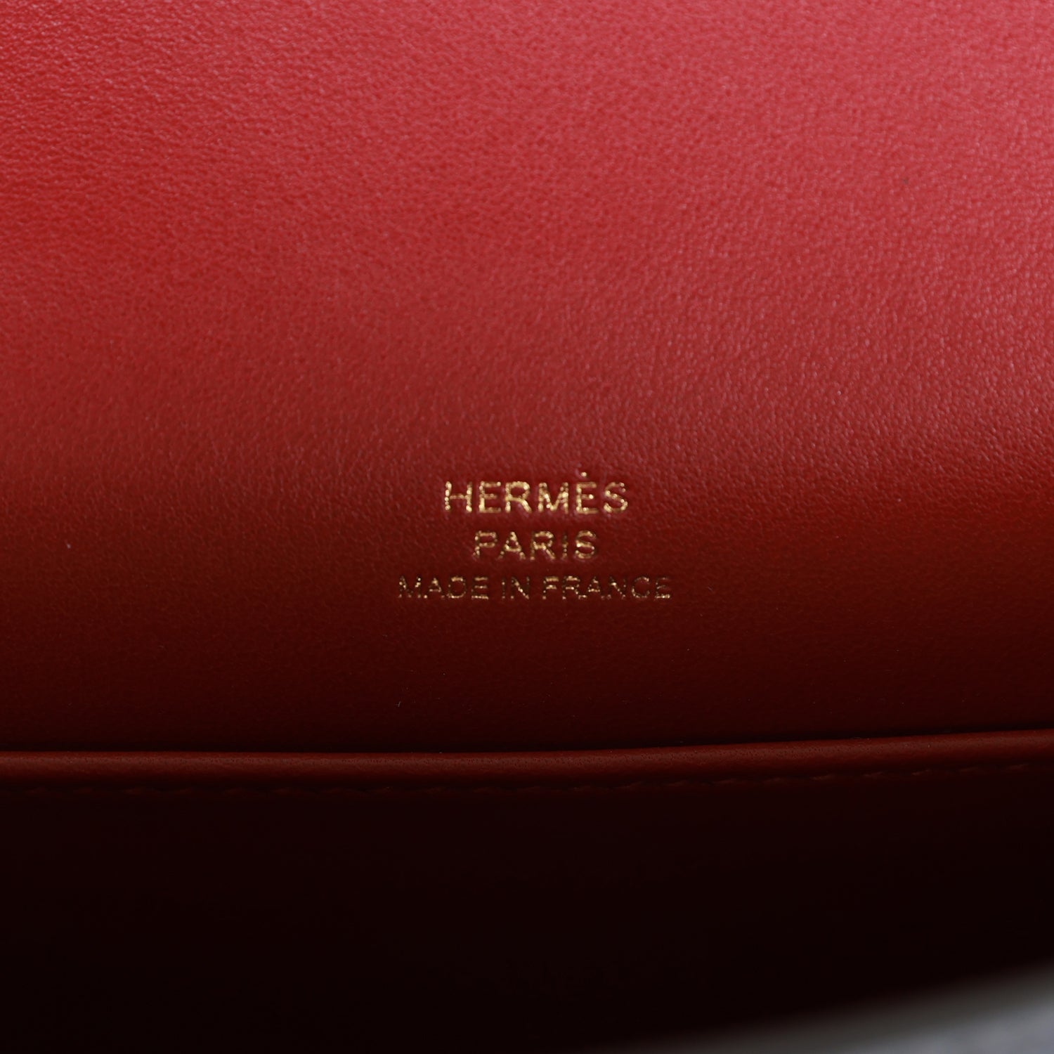 The interior is lined with Rouge H lambskin leather and has one open pocket on the back wall.