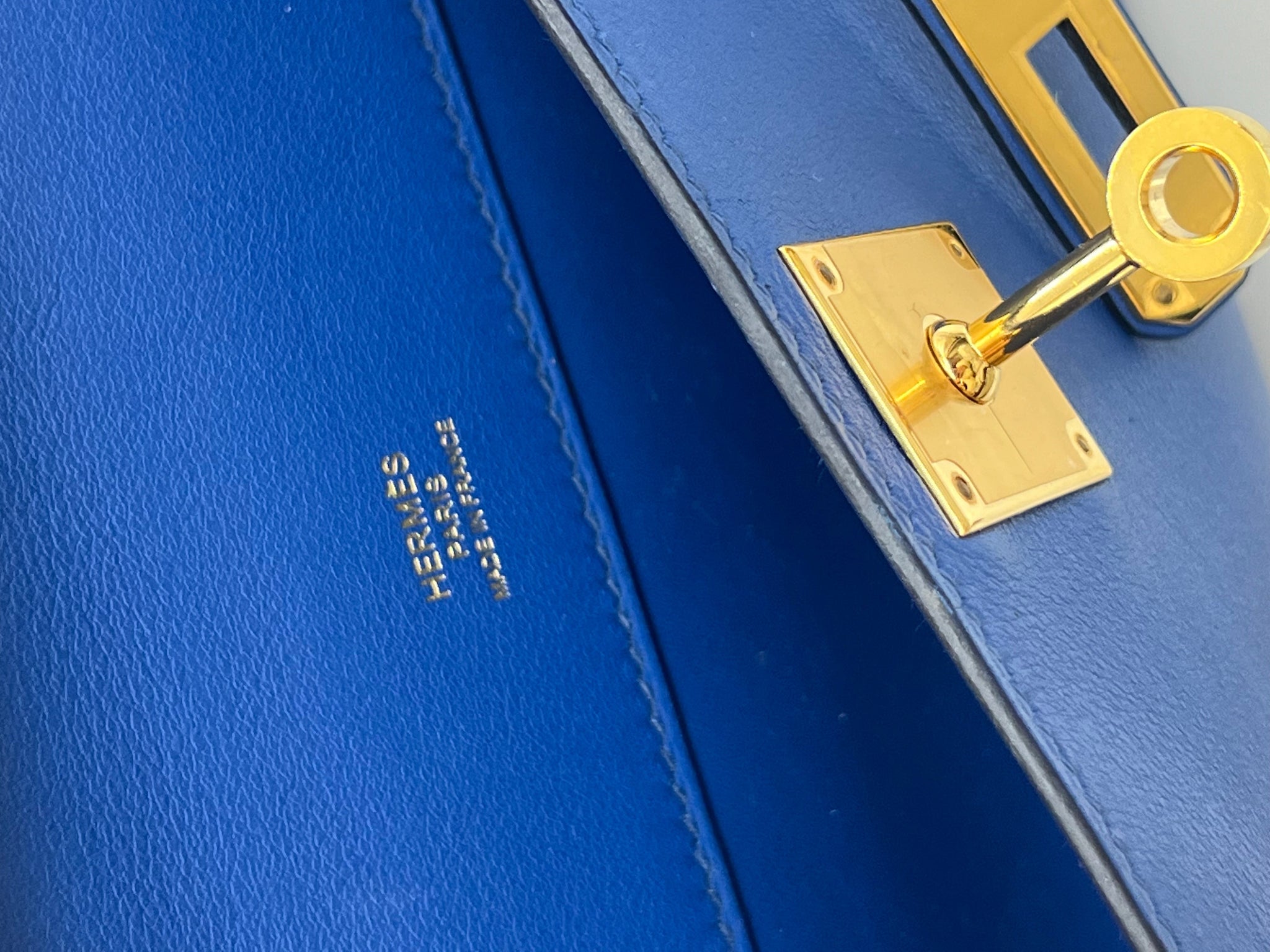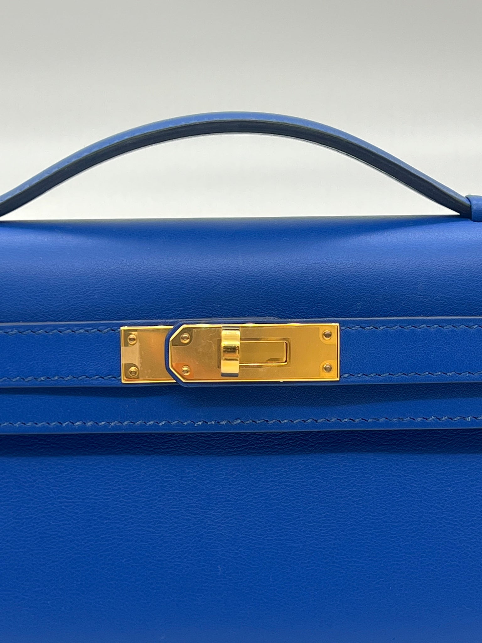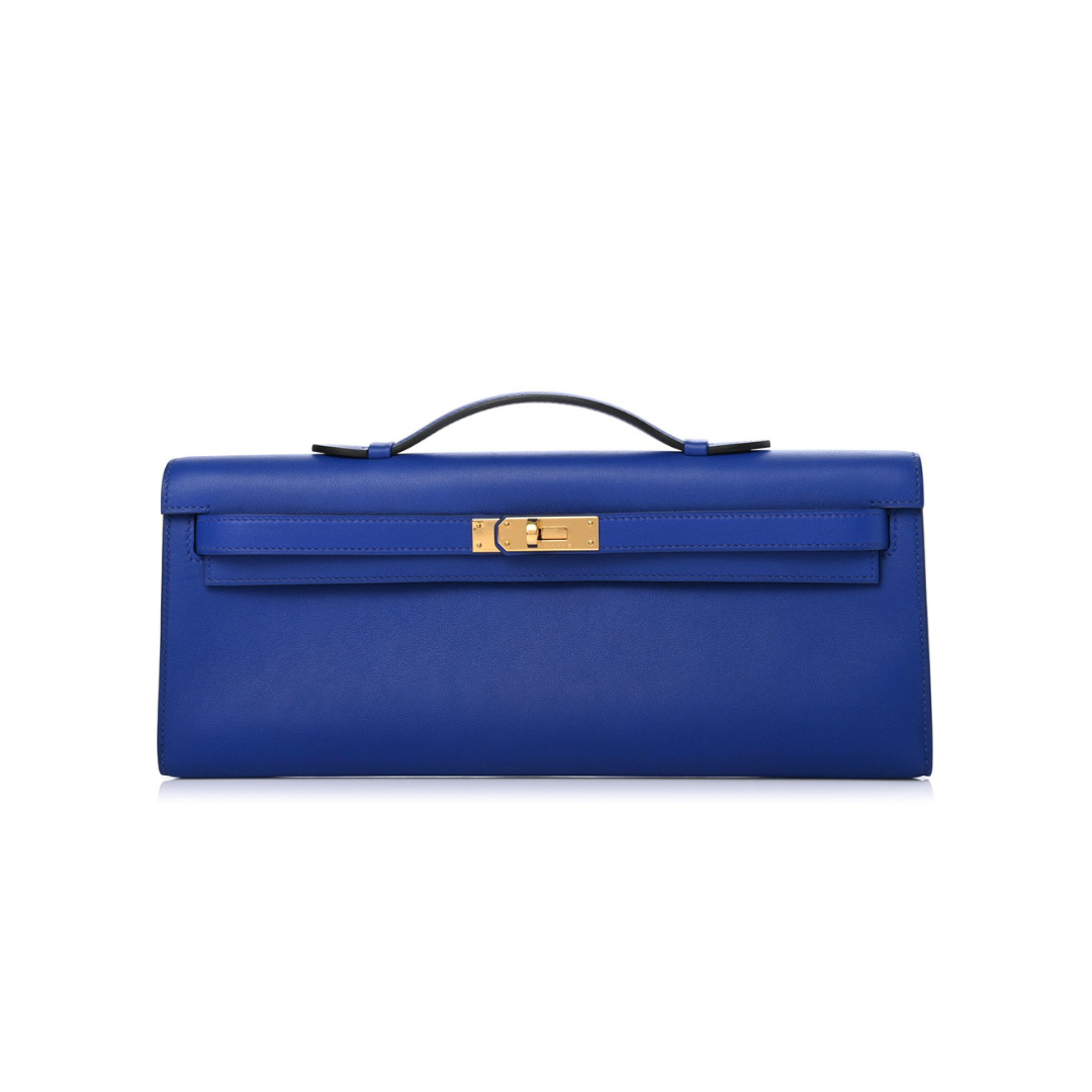 Hermes Kelly Cut Clutch Swift Calfskin Bleu France, Gold Hardware