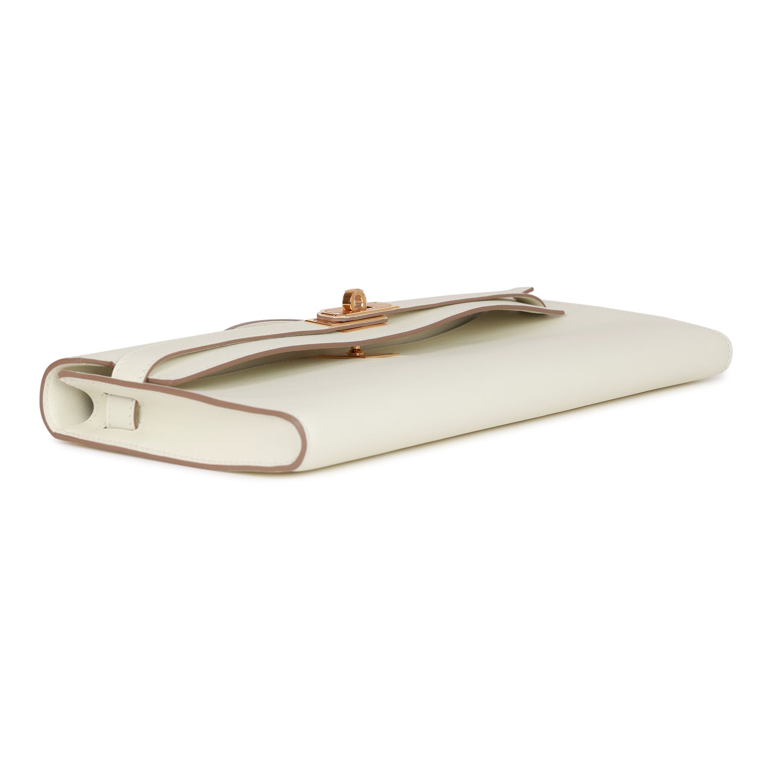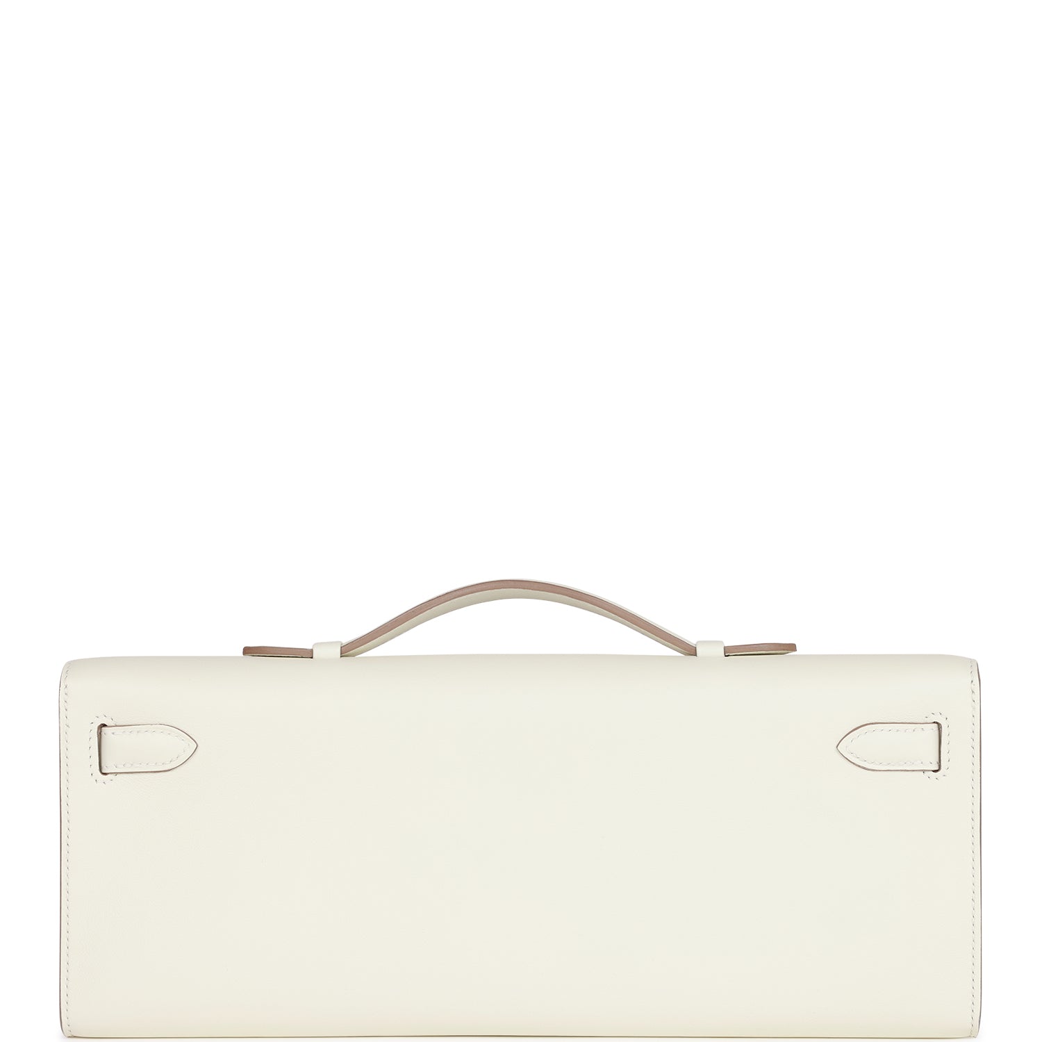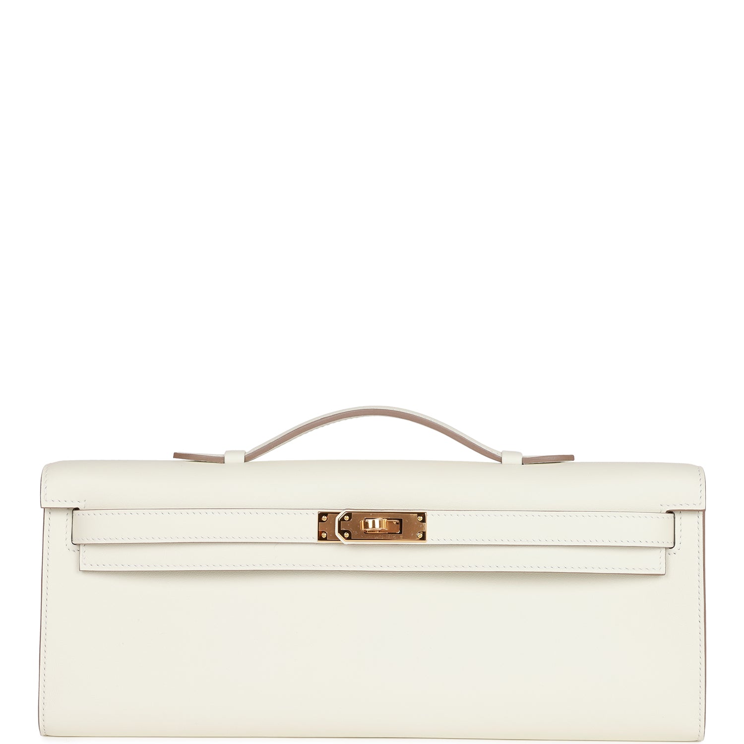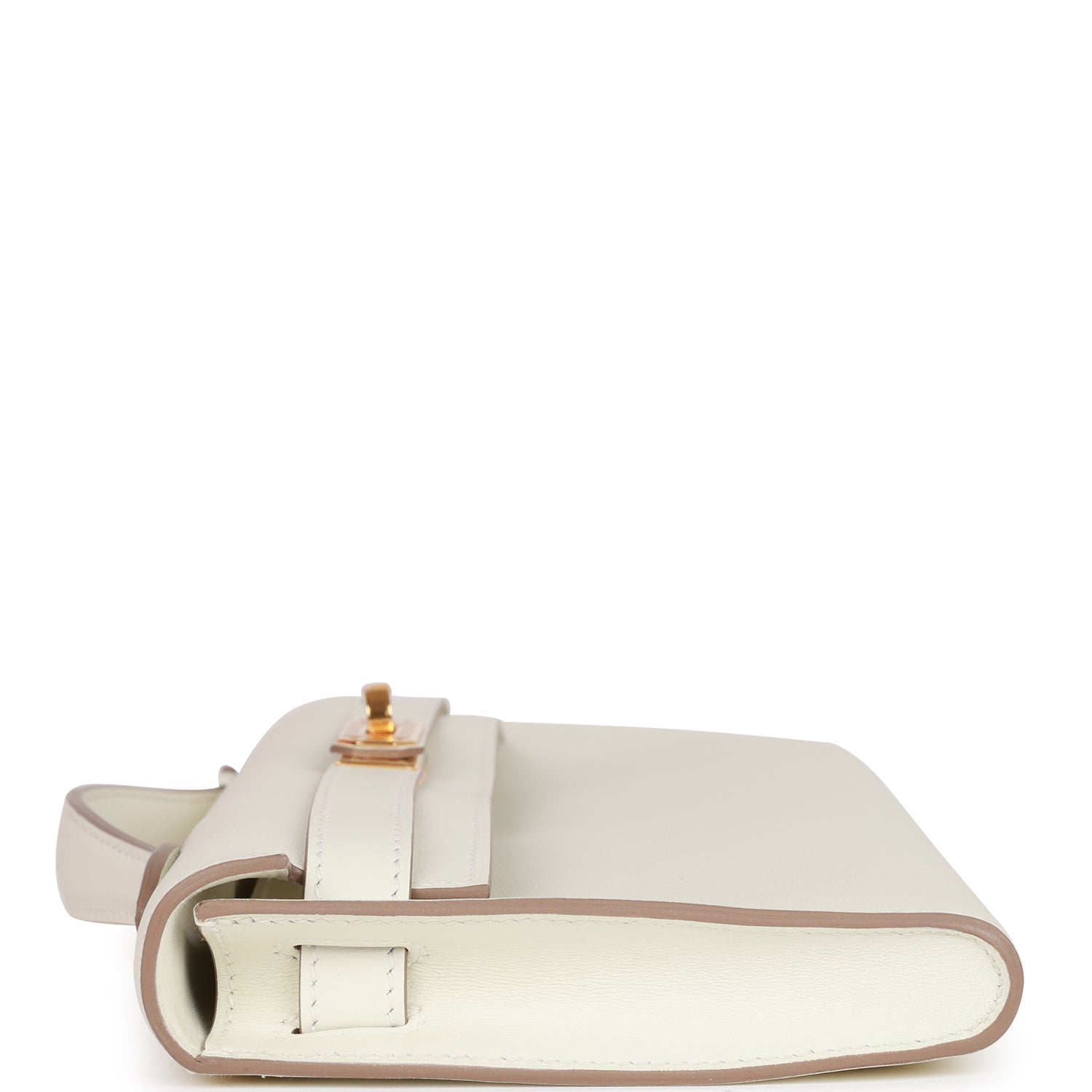 This Kelly Cut is in Mushroom swift leather with gold hardware and has tonal stitching, two straps with front toggle closure and a top flat handle.