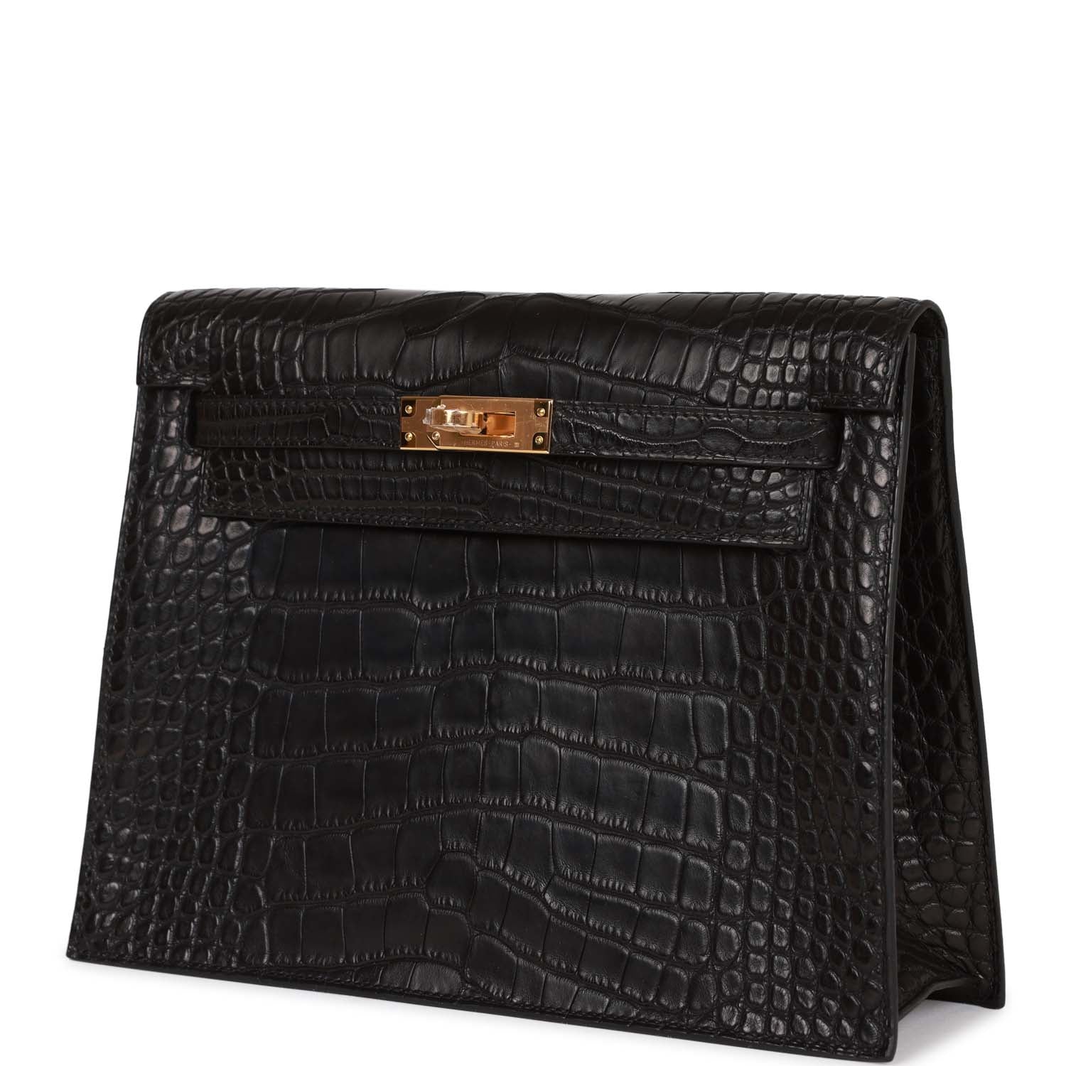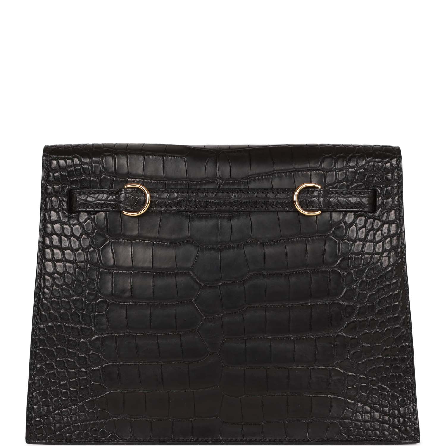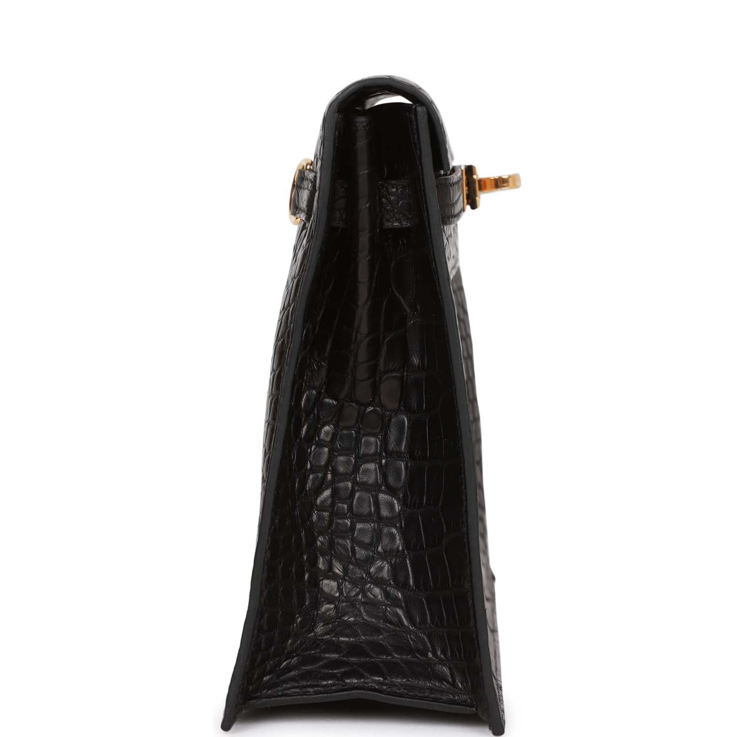 This Hermes Kelly Danse II is in Black Matte Mississippienis Alligator with gold hardware and has tonal stitching, two straps with front flap closure and an adjustable flat crossbody/backpack/belt strap.