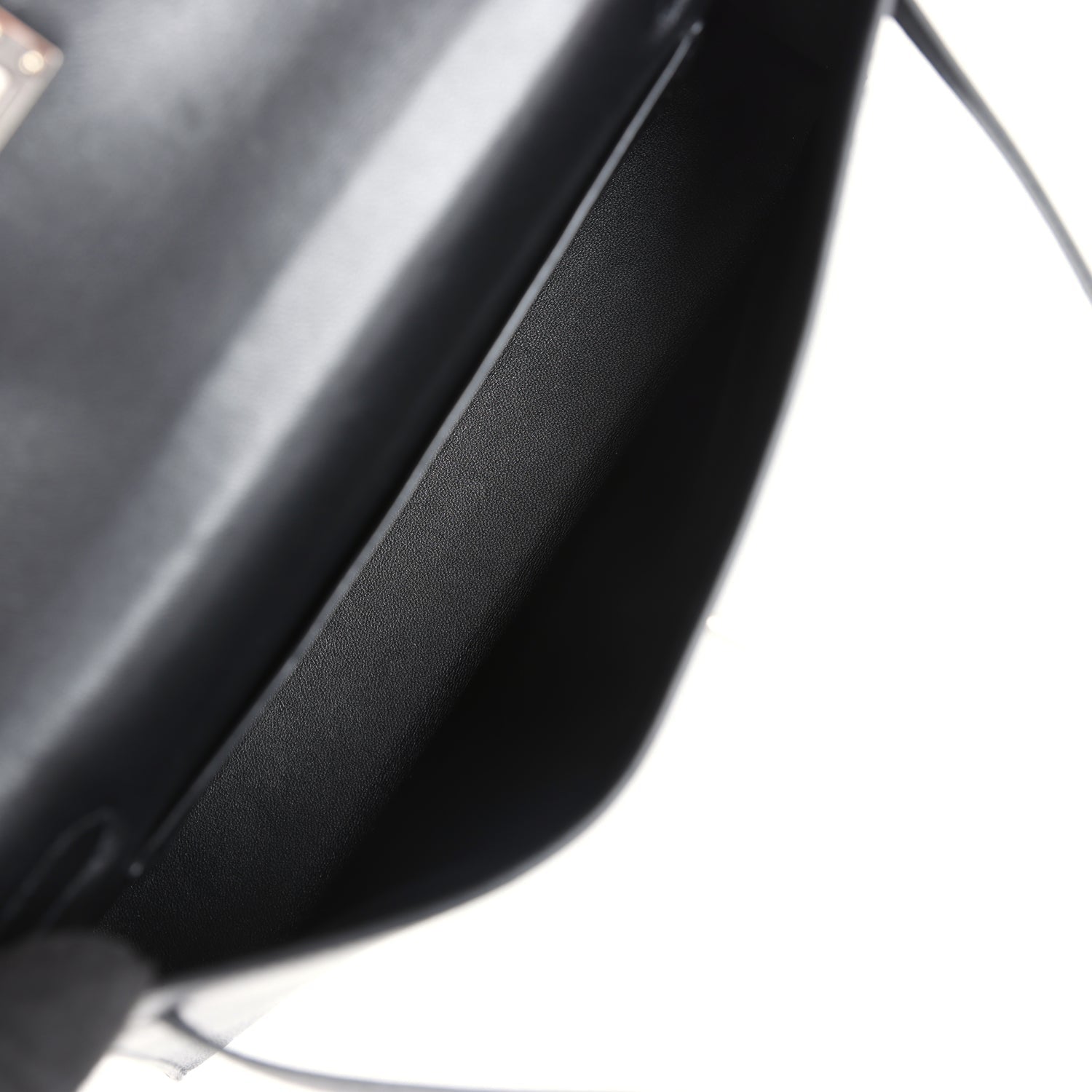The interior is lined with Black lambskin and has one interior slit pocket.