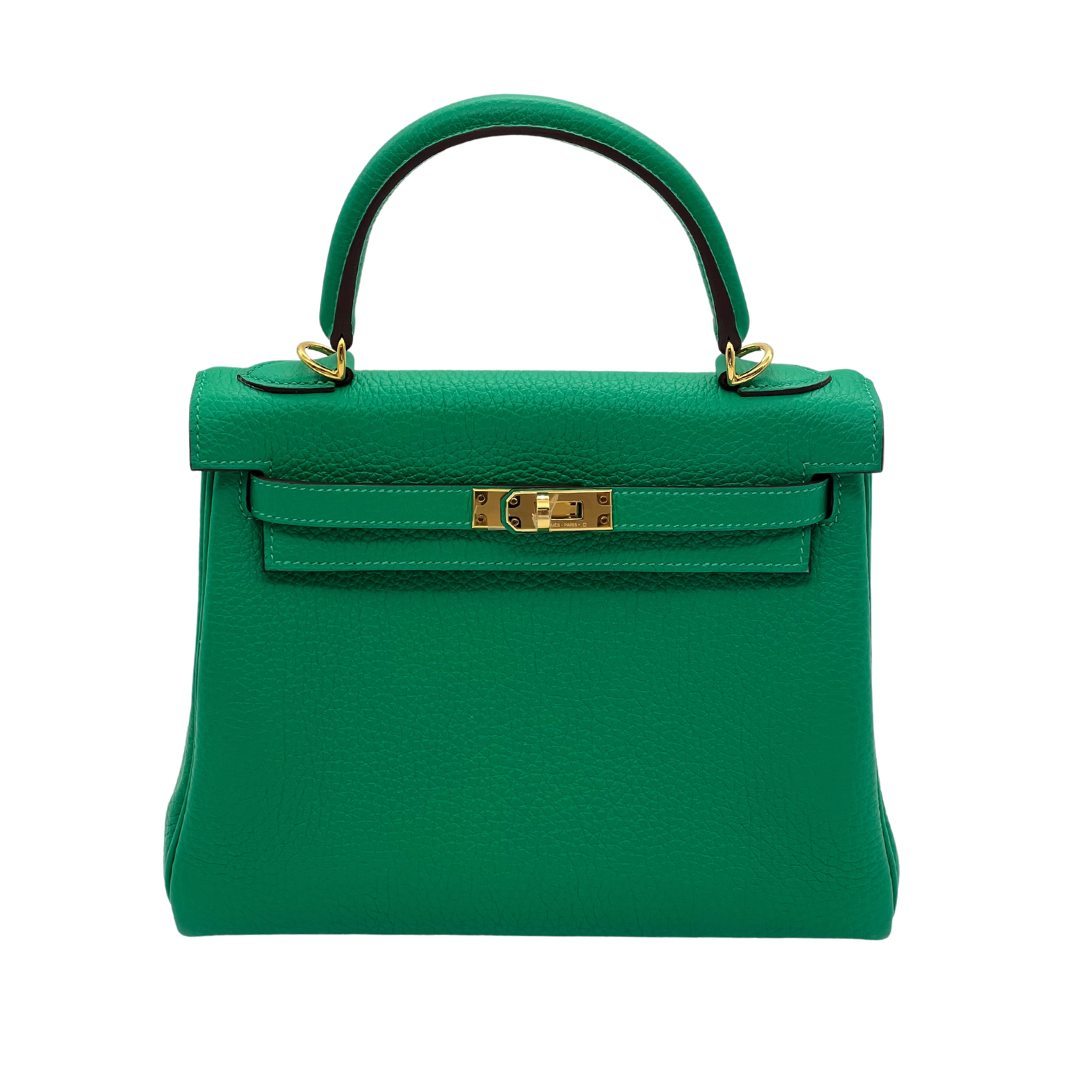 Hermes Kelly II 25 Retourne Veau Togo Leather Perso Menthe, Gold Hardware