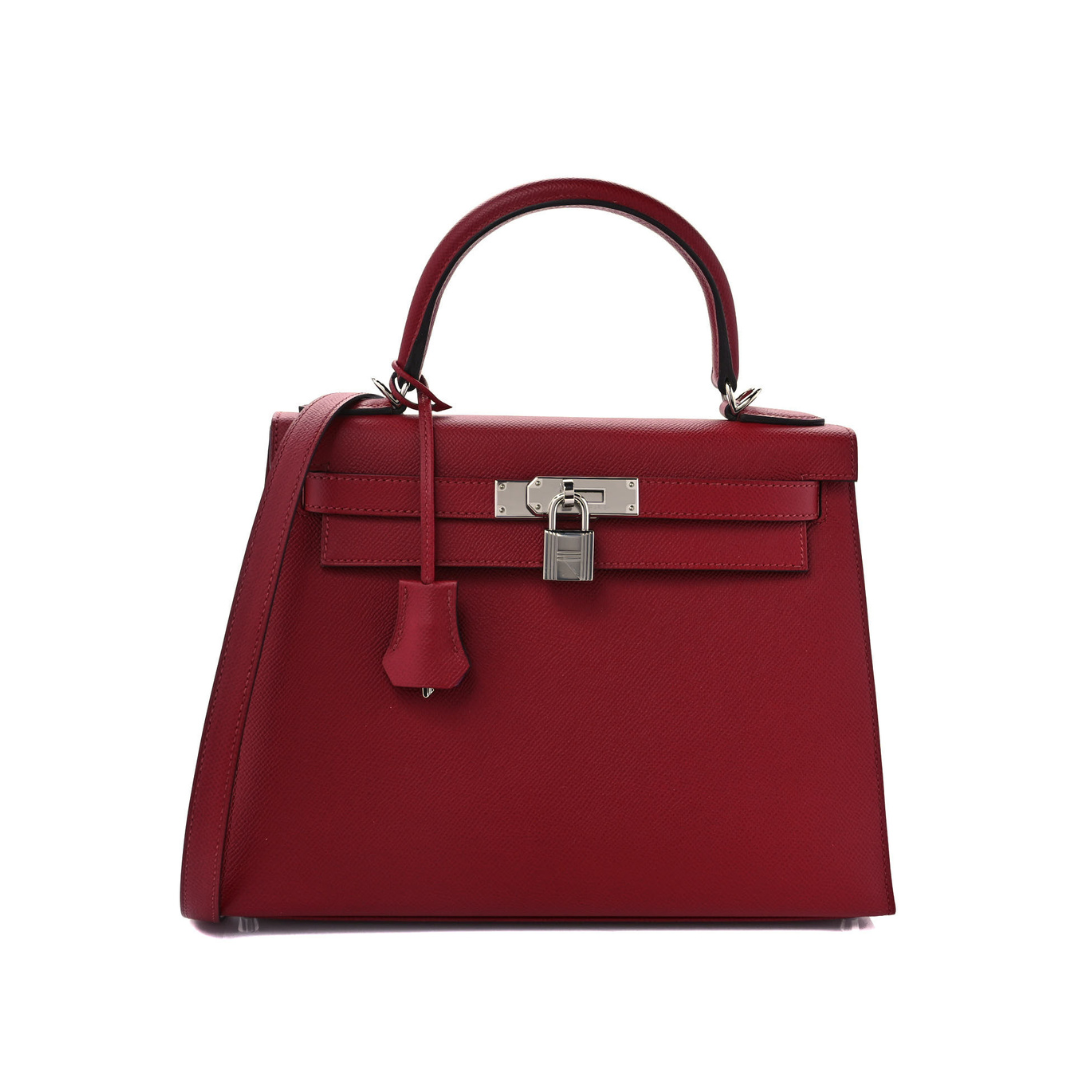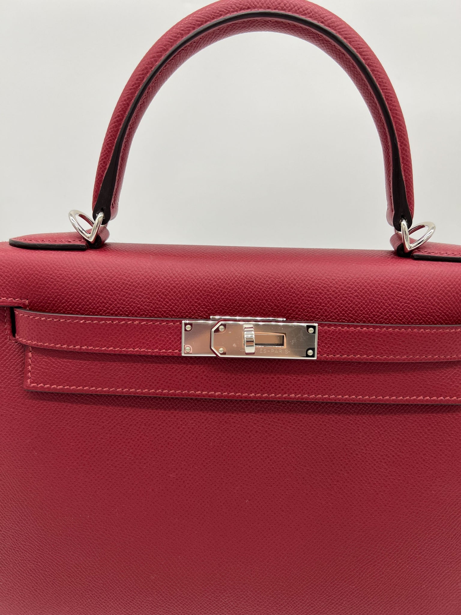 Hermes Kelly II 28 Sellier Verso Veau Epsom AJ Rouge Grenat / Rose Pourpre, Palladium Hardware