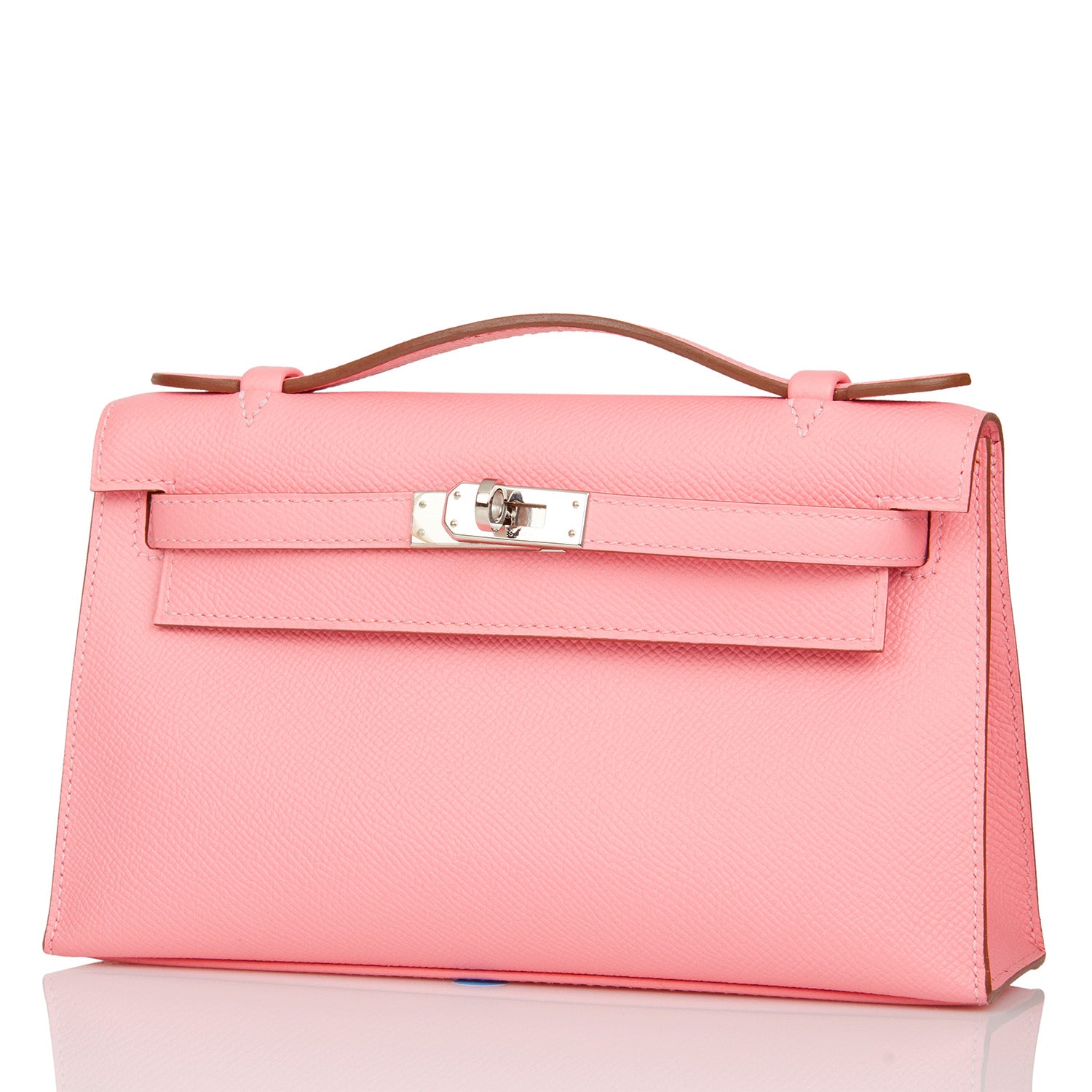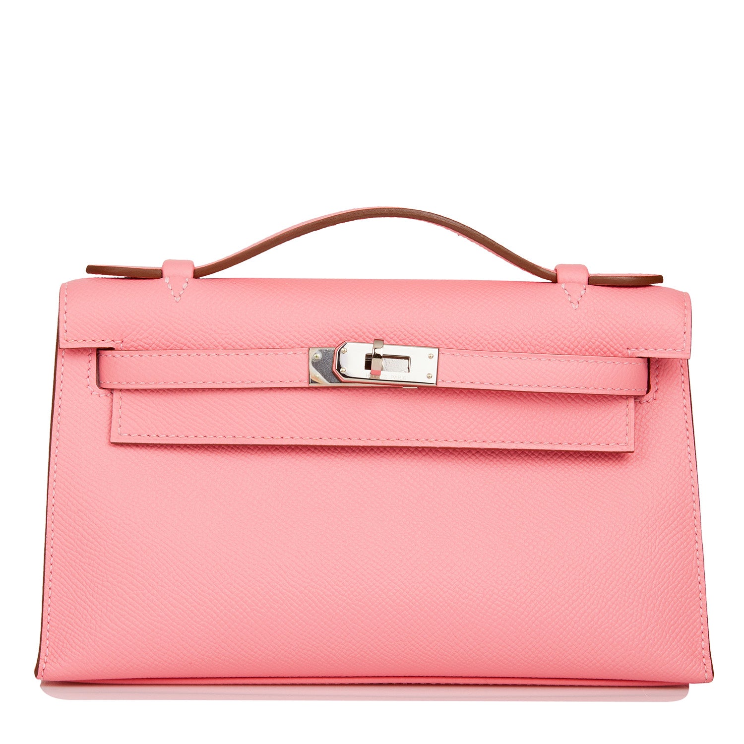 This Mini Kelly Pochette is in Rose Confetti epsom leather with palladium hardware and has tonal stitching, front flap, two straps with center toggle closure and a top flat handle.