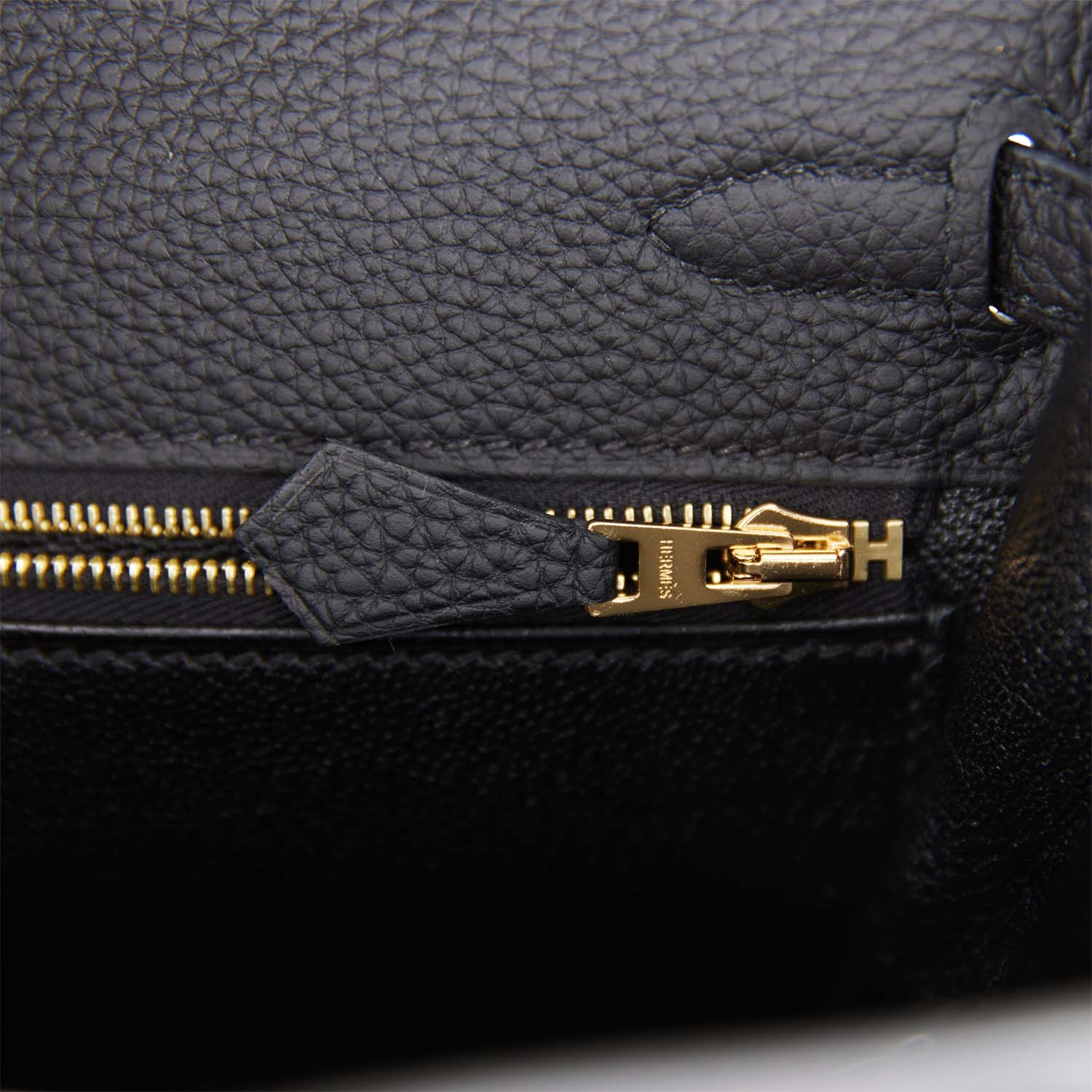 The interior is lined with black chevre leather and has one zip pocket with an Hermes engraved pull and one open pocket on the opposite side.