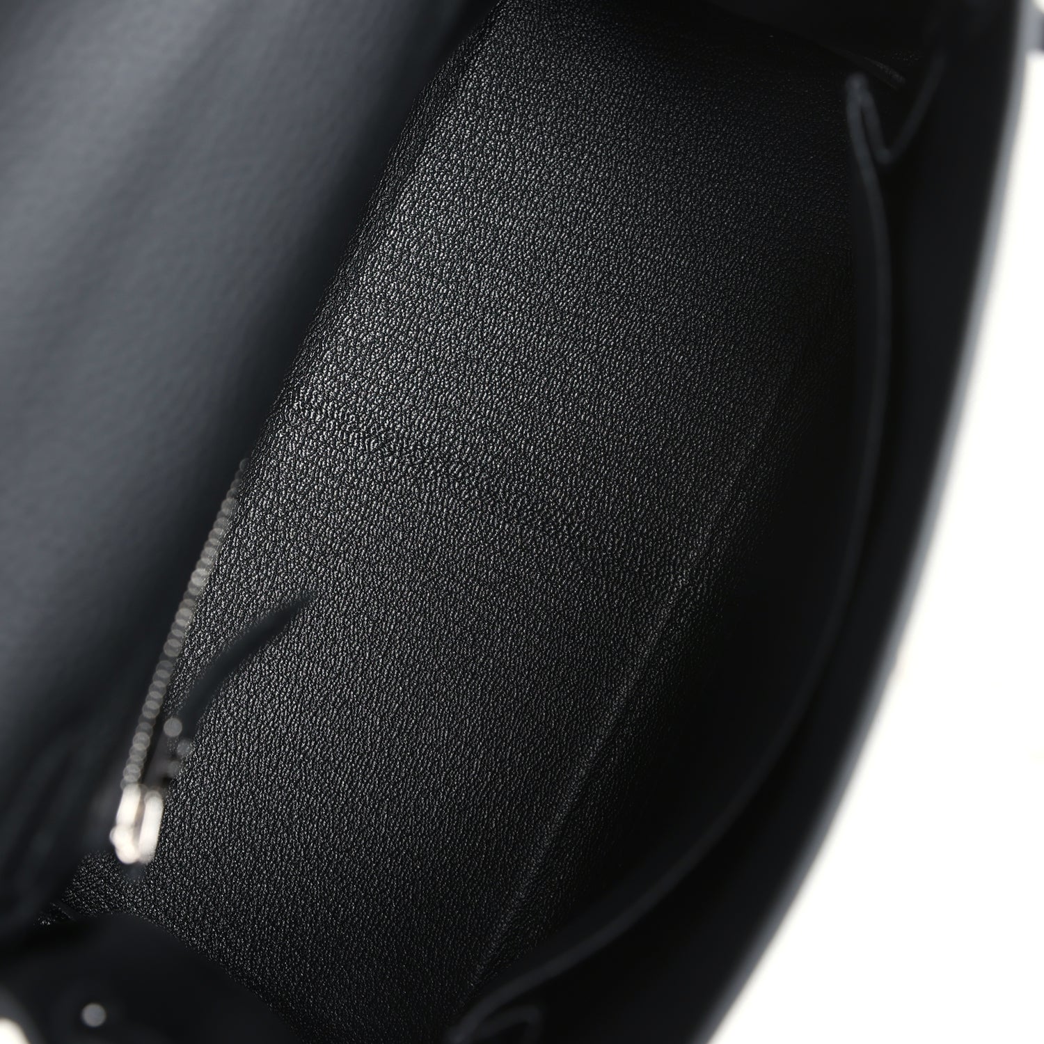 The interior is lined with Black chevre leather and has one zip pocket with an Hermes engraved pull and one open pocket on the opposite side.