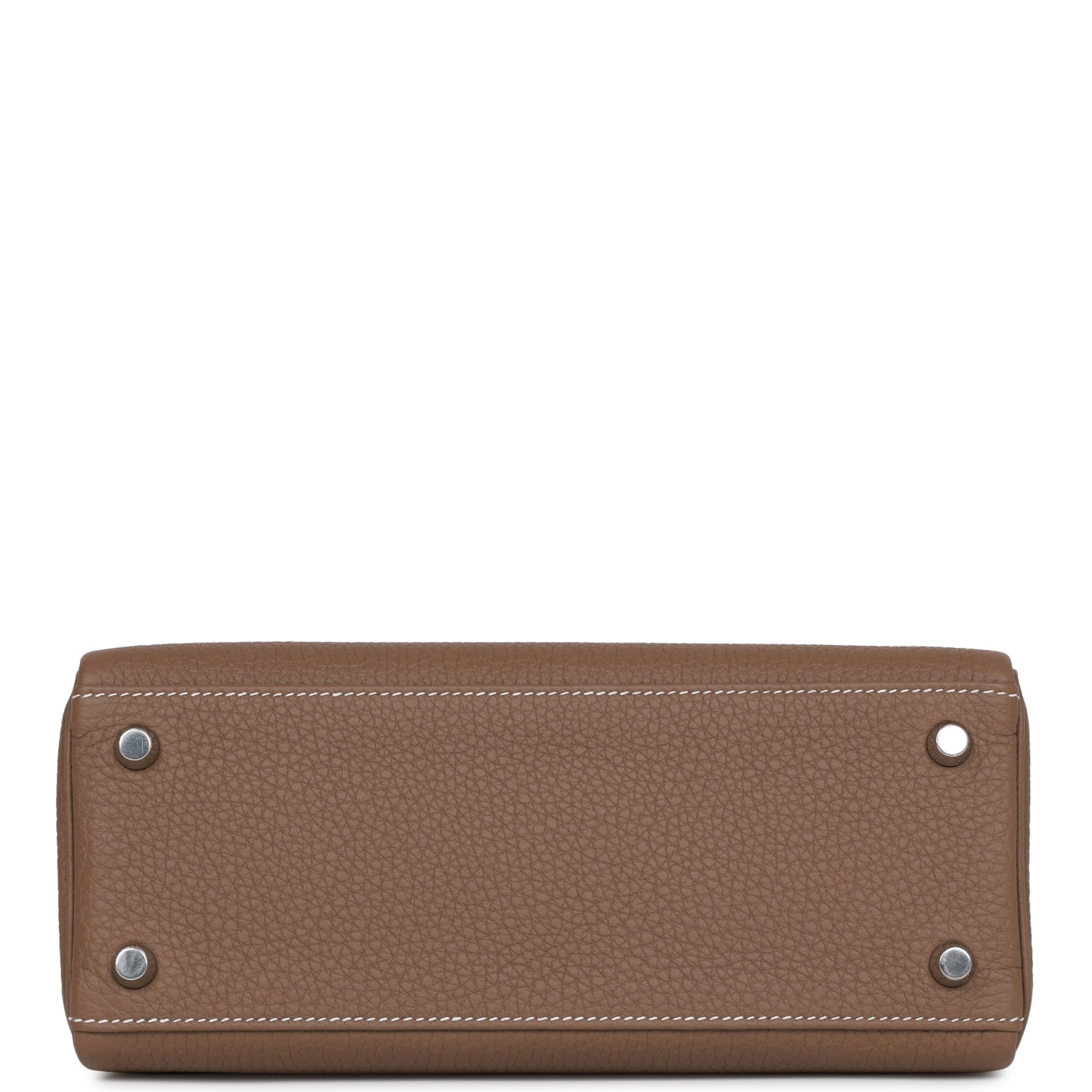 This Retourne Kelly is of Etoupe togo leather with palladium hardware and has contrast stitching, front flap, two straps with center toggle closure, clochette with lock and two keys, single rolled handle and an optional shoulder strap.