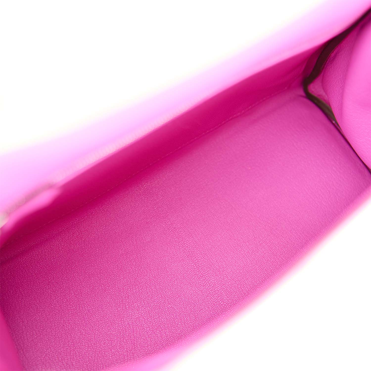 The interior is lined in Magnolia chevre and has one zip pocket with Hermes engraved pull and two open pockets on the opposite side.