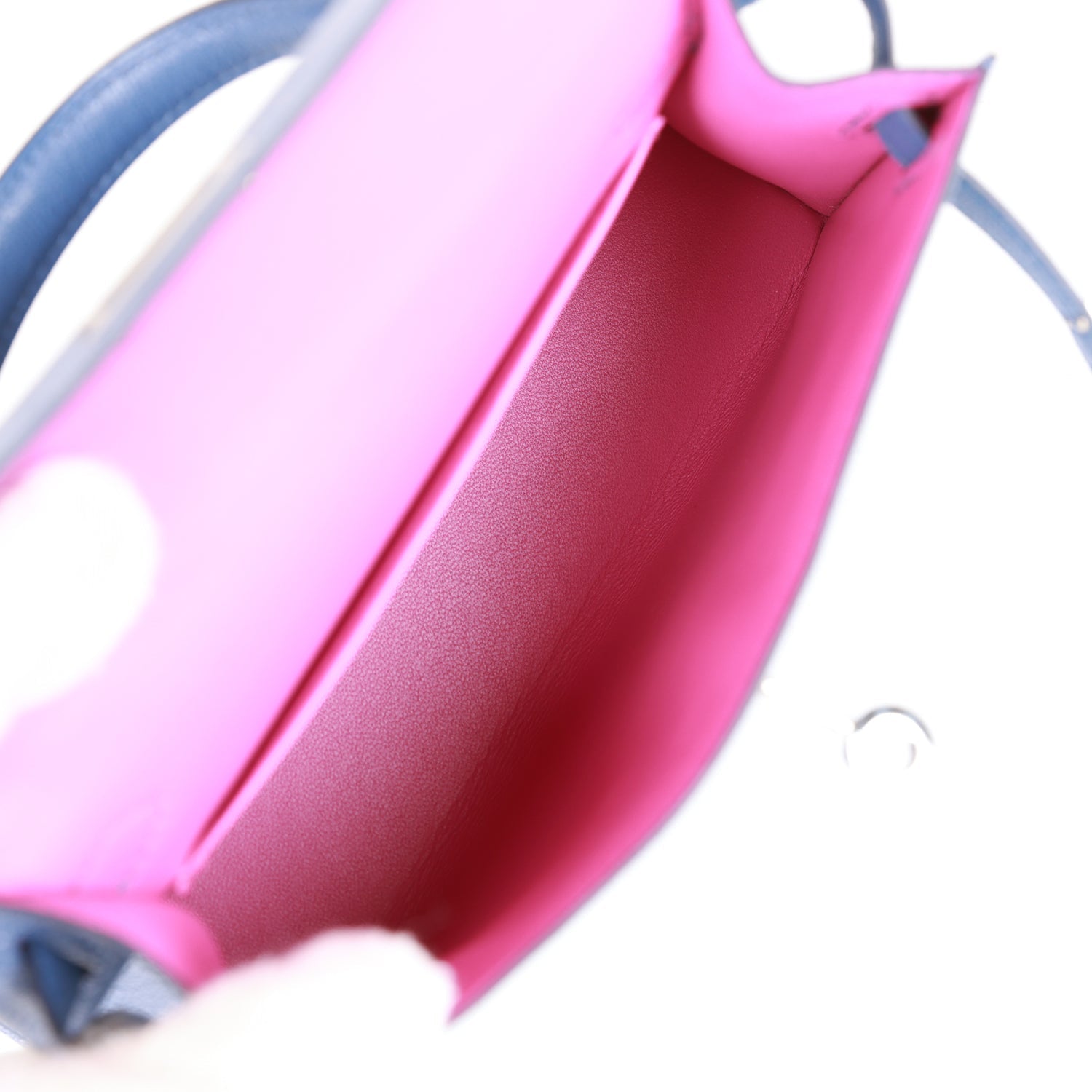 This Kelly, in the Sellier style, is in Bleu Brighton chevre leather with palladium hardware and has tonal stitching, two straps with front toggle closure, single rolled handle and removable shoulder strap.