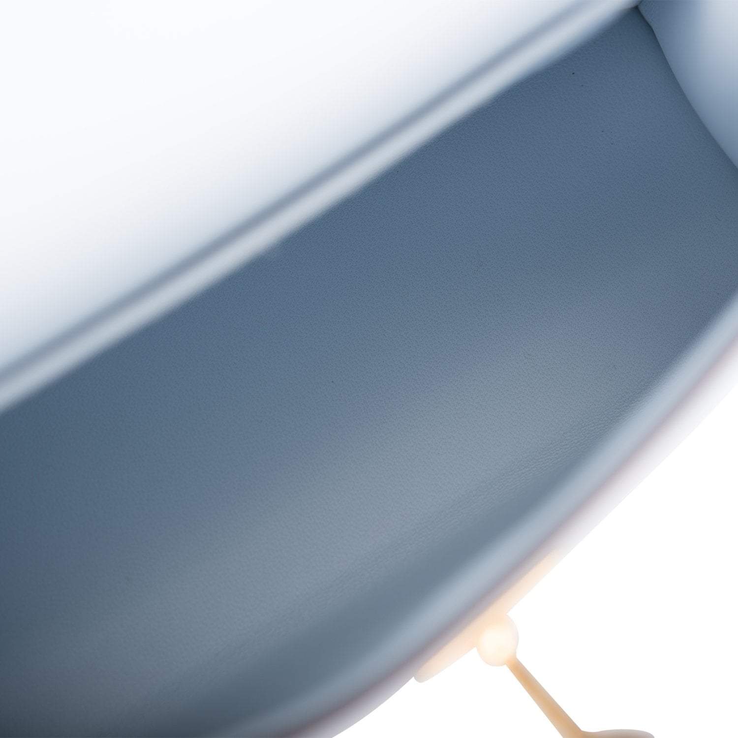 The interior is lined with Bleu Brume lambskin leather and has one open pocket on the back wall.
