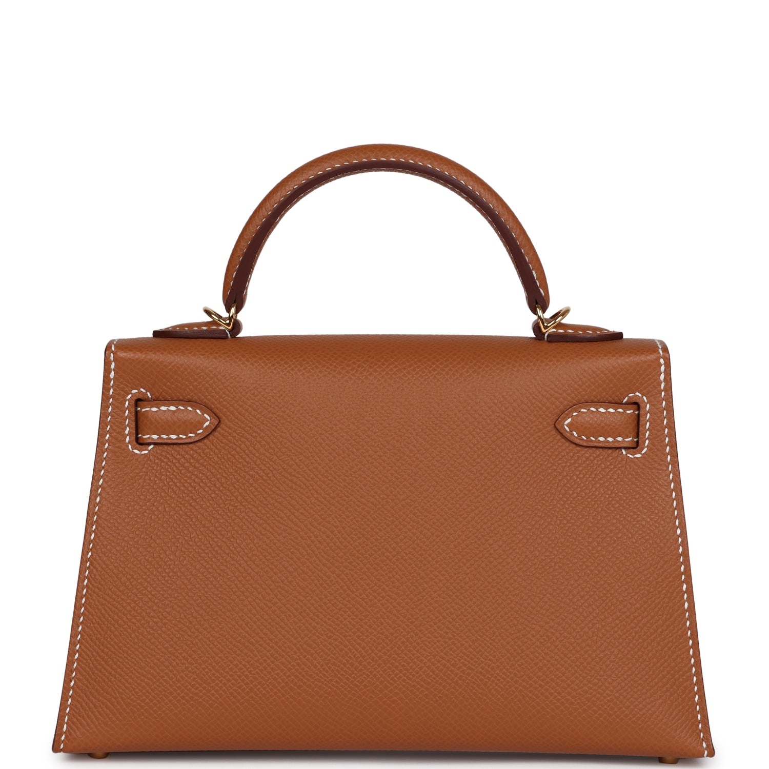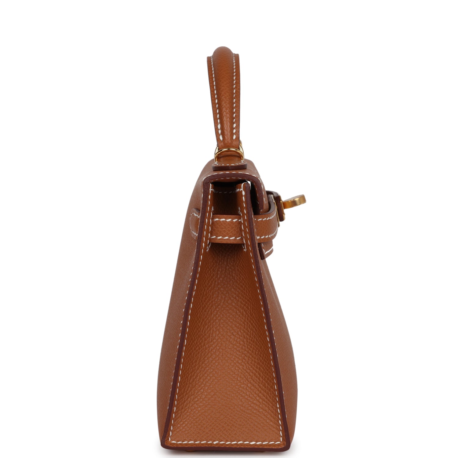 This Kelly, in the Sellier style, is in Gold epsom leather with gold hardware and has contrast stitching, two straps with front toggle closure, single rolled handle and removable shoulder strap.
