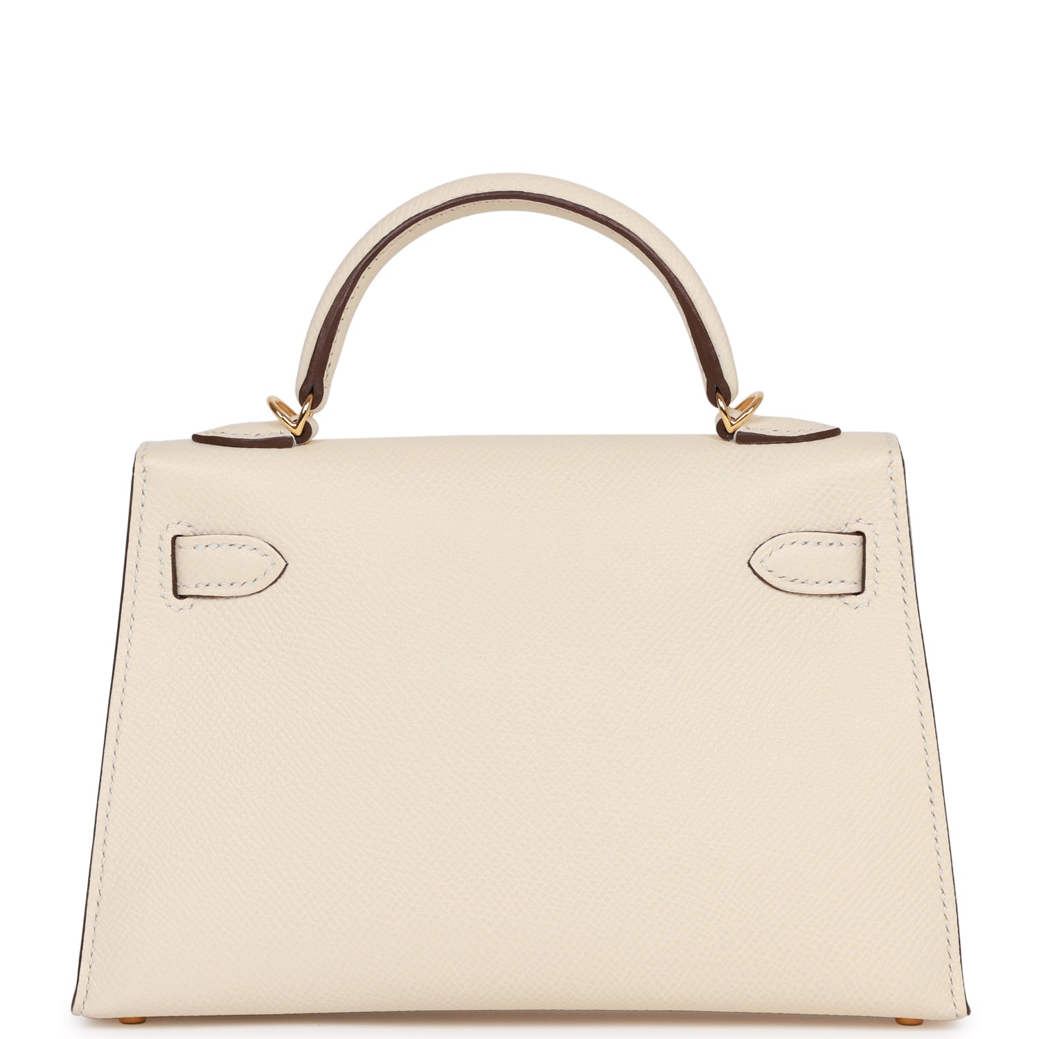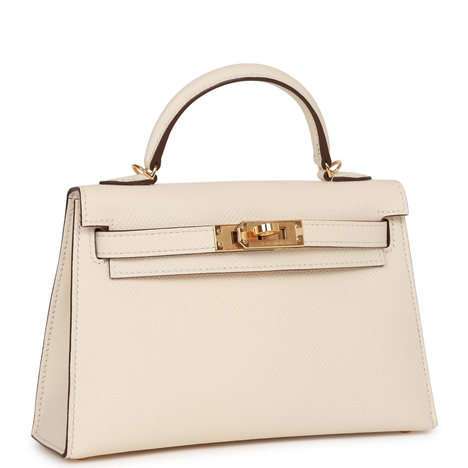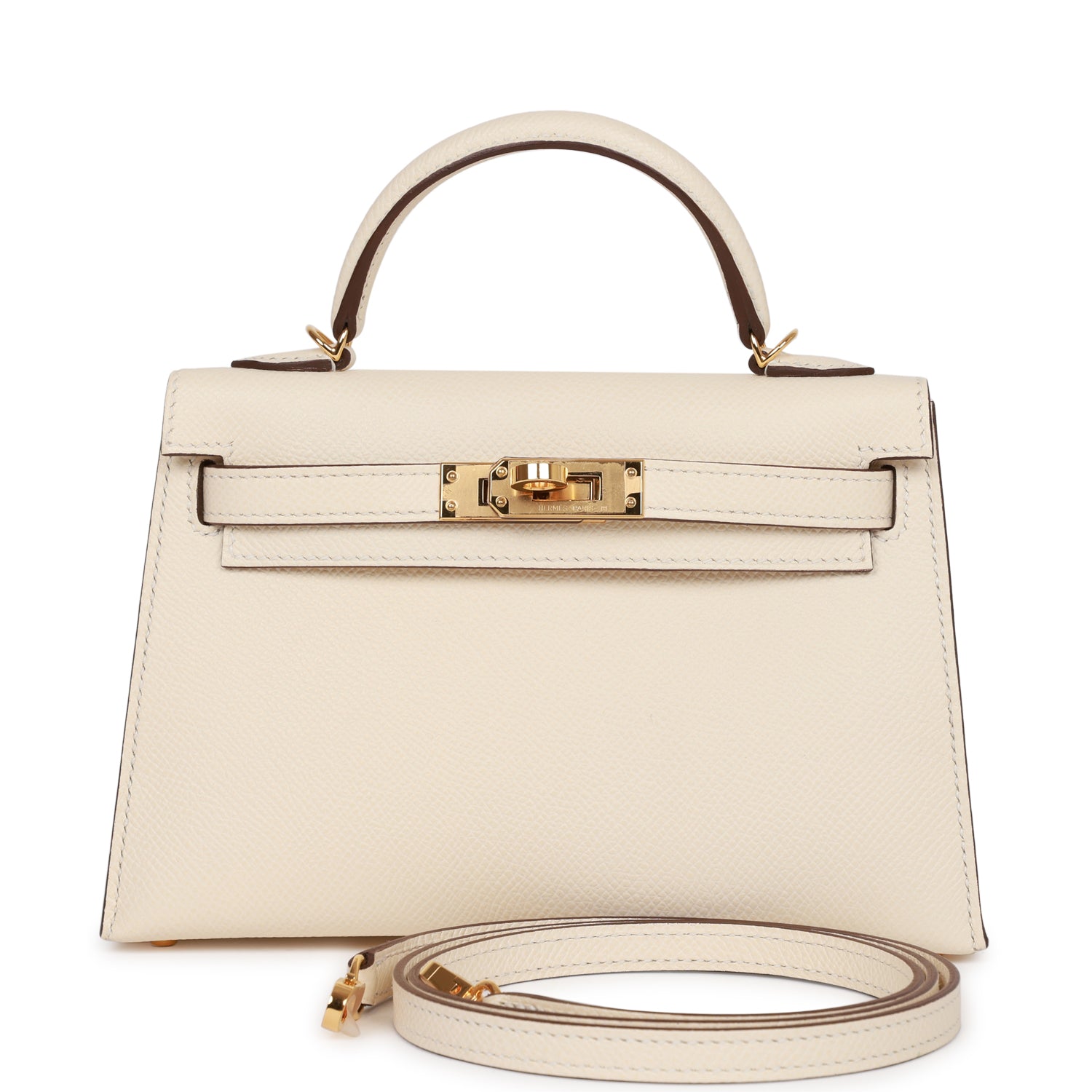 This Kelly, in the Sellier style, is in Nata epsom leather with gold hardware and has tonal stitching, two straps with front toggle closure, single rolled handle and removable shoulder strap.