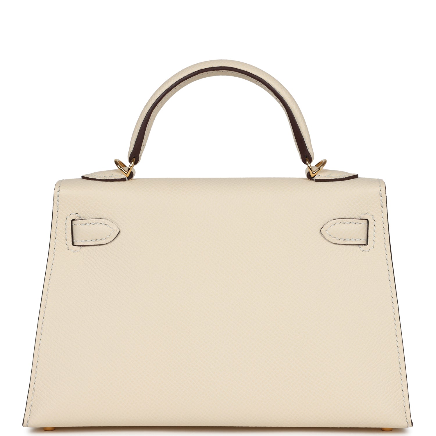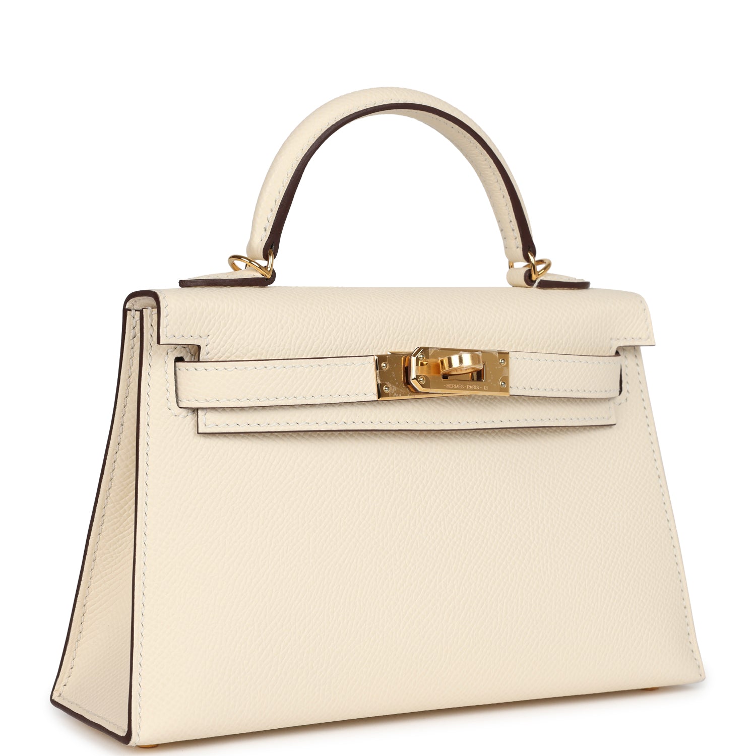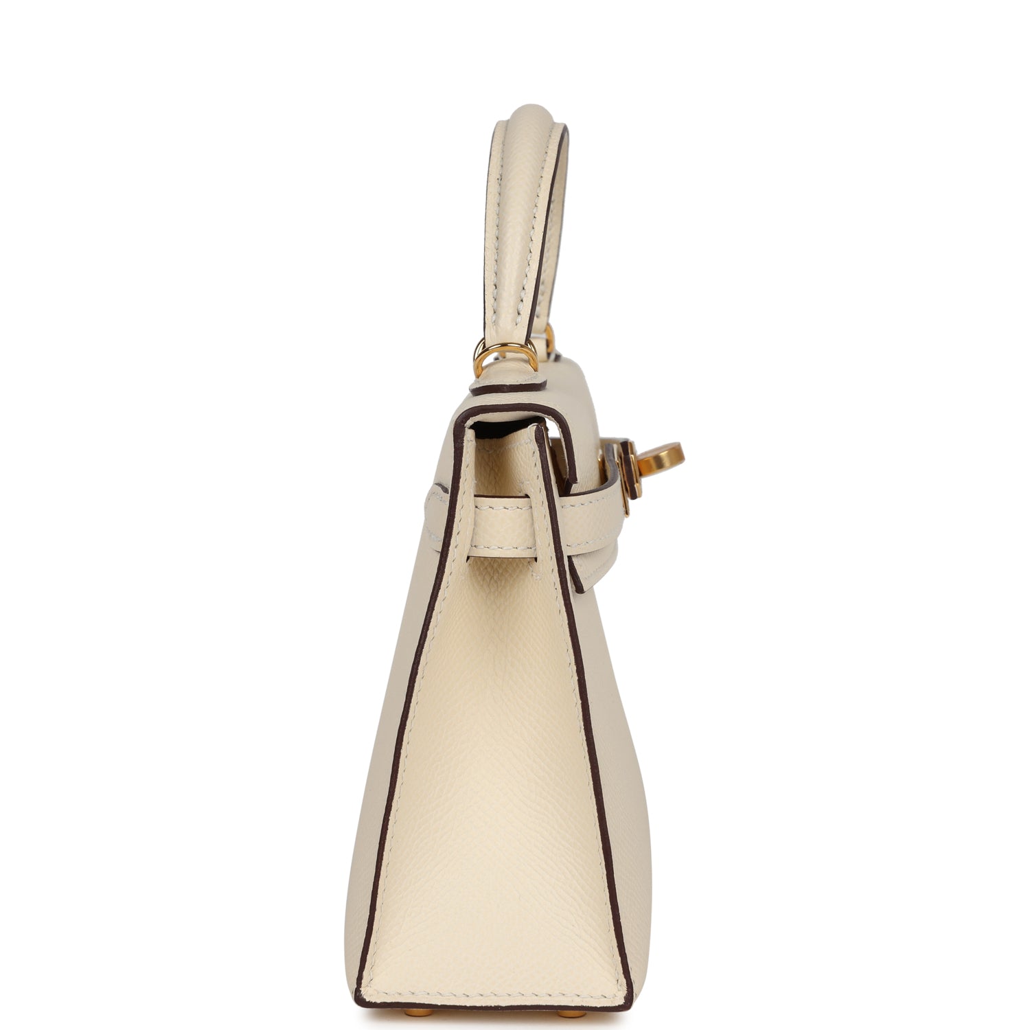 This Kelly, in the Sellier style, is in Nata epsom leather with gold hardware and has tonal stitching, two straps with front toggle closure, single rolled handle and removable shoulder strap.