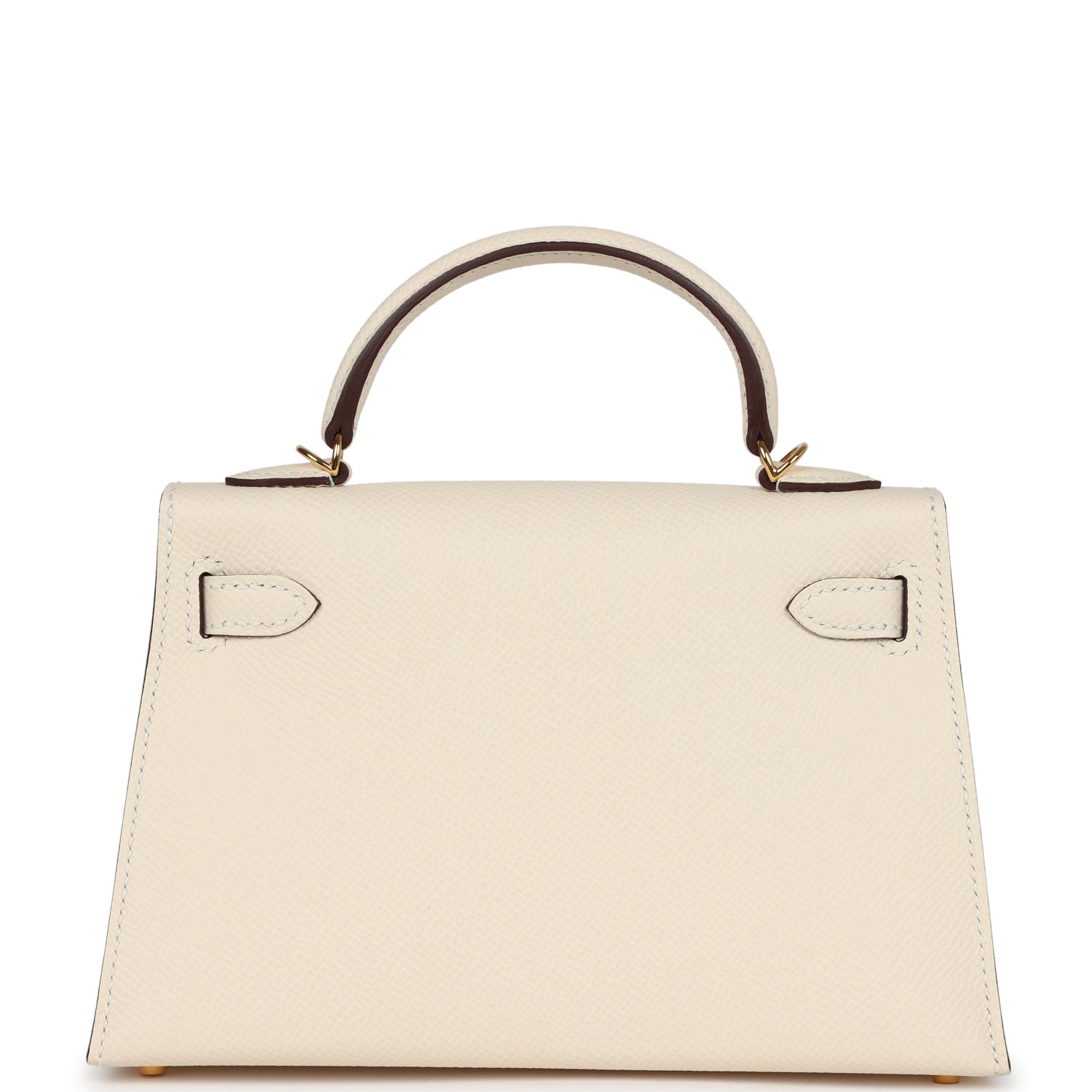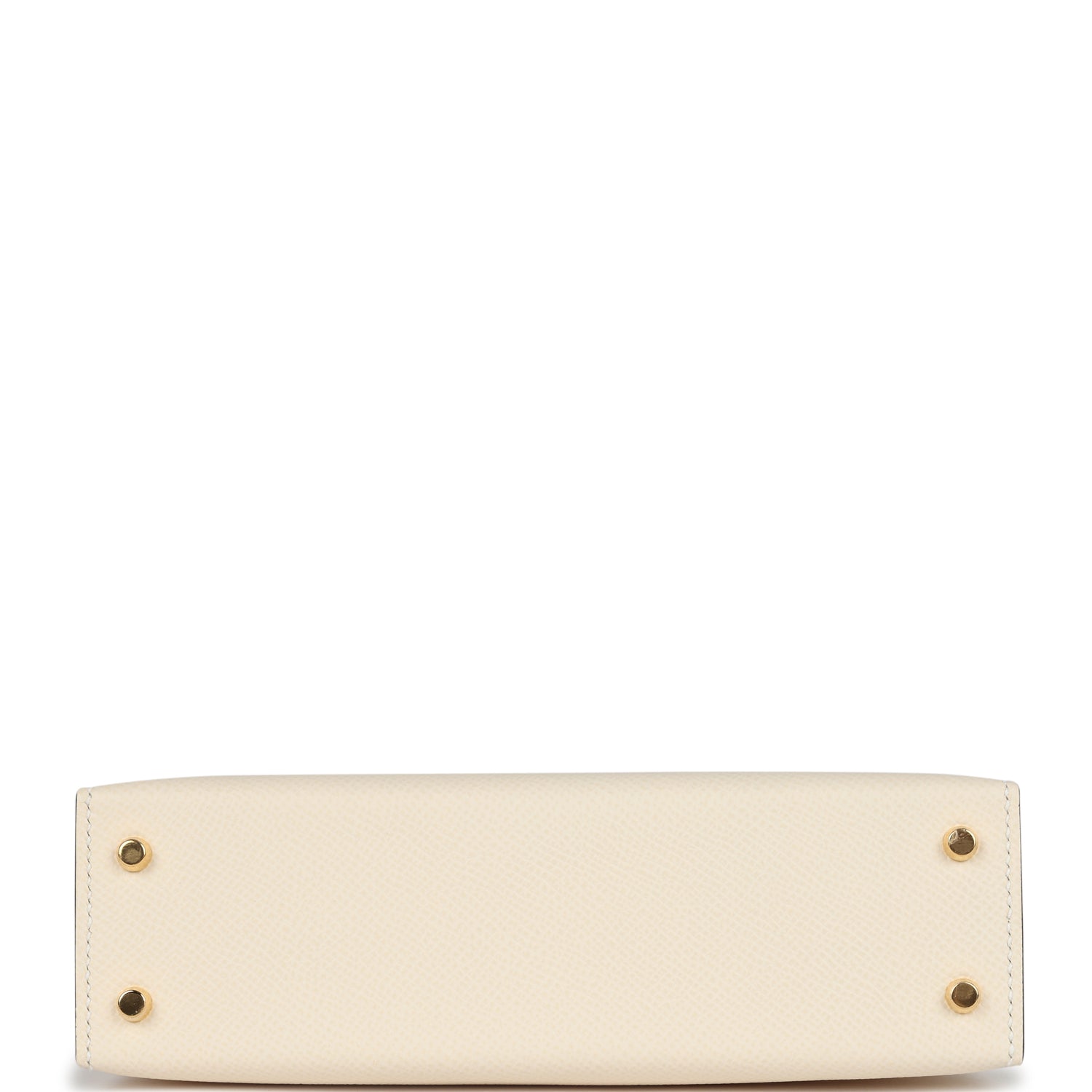 This Kelly, in the Sellier style, is in Nata epsom leather with gold hardware and has tonal stitching, two straps with front toggle closure, single rolled handle and removable shoulder strap.