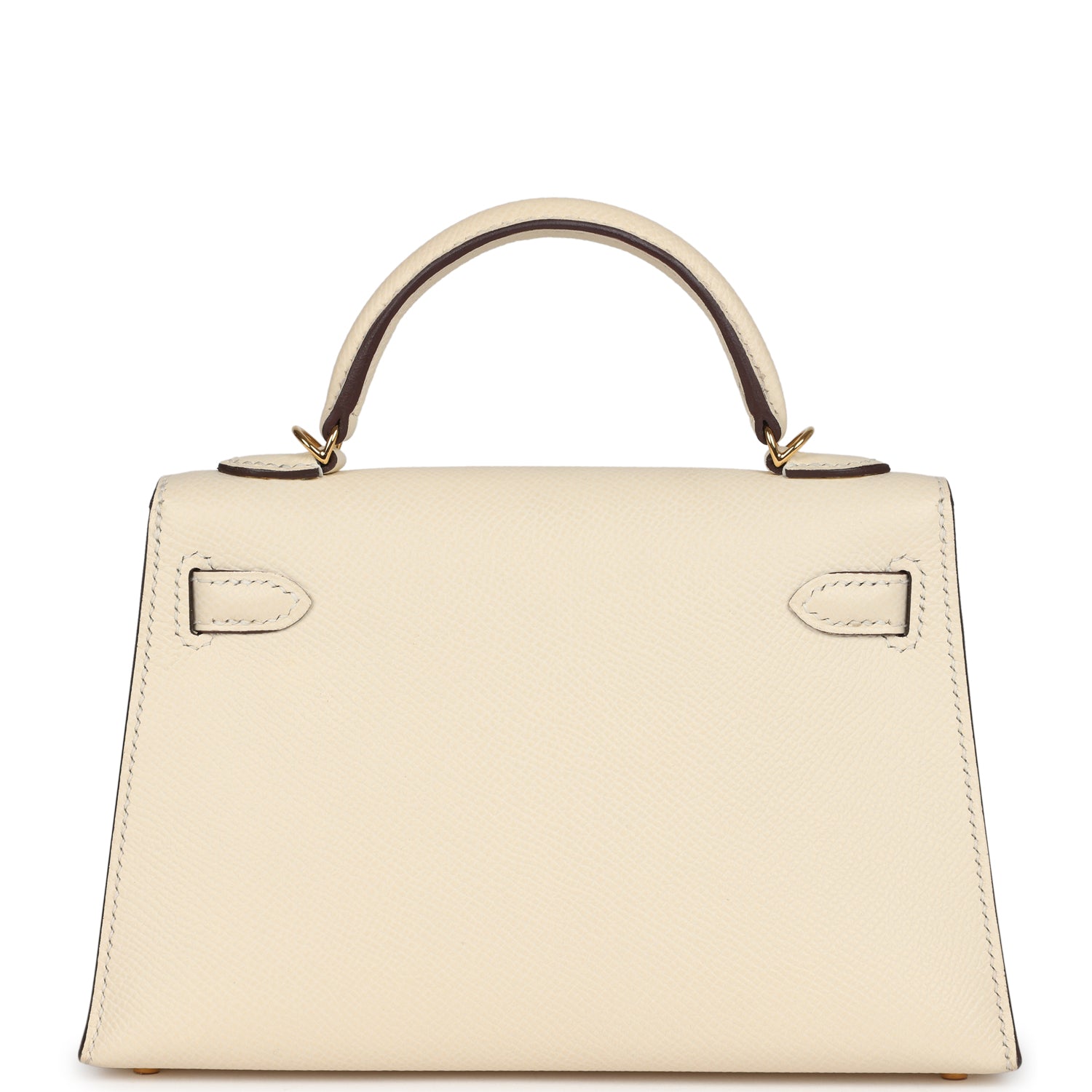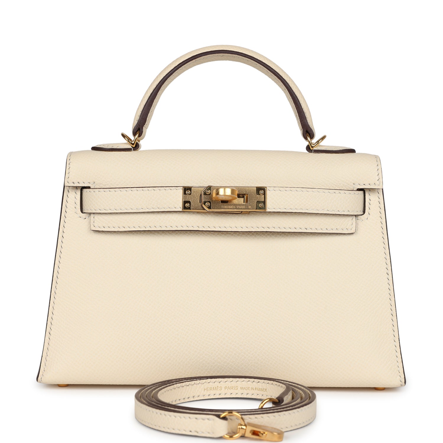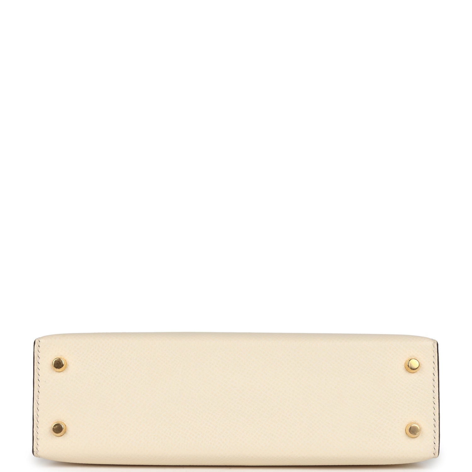 This Kelly, in the Sellier style, is in Nata epsom leather with gold hardware and has tonal stitching, two straps with front toggle closure, single rolled handle and removable shoulder strap.