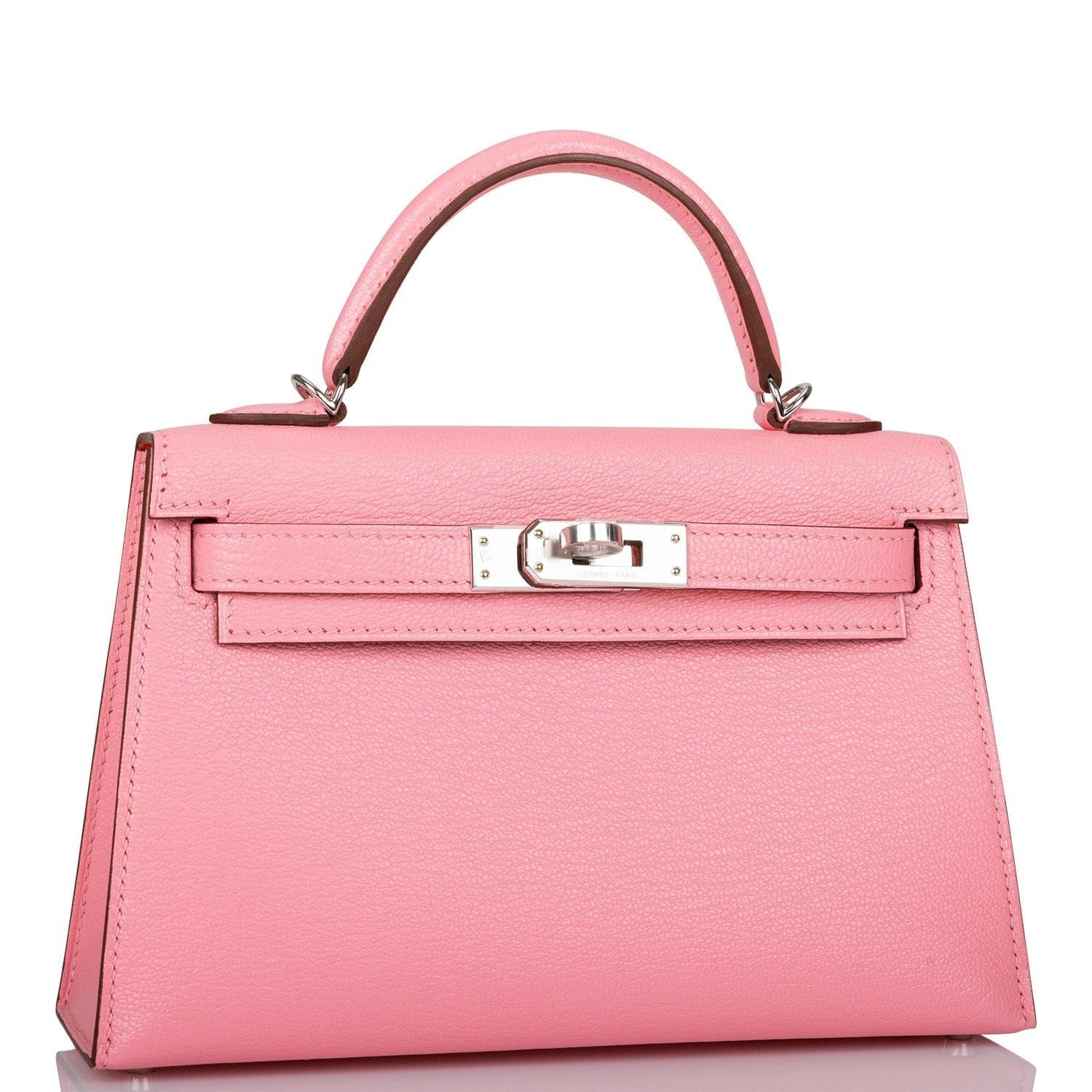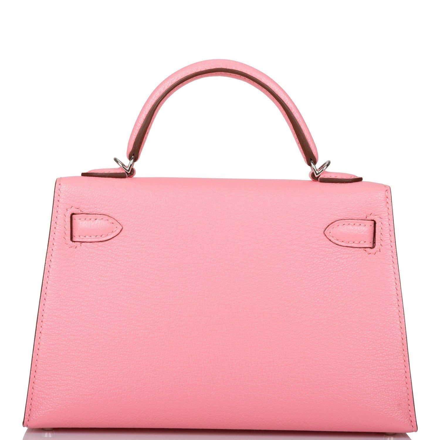 This Kelly, in the Sellier style, is in Rose Confetti chevre leather with palladium hardware and has tonal stitching, two straps with front toggle closure, single rolled handle and removable shoulder strap.