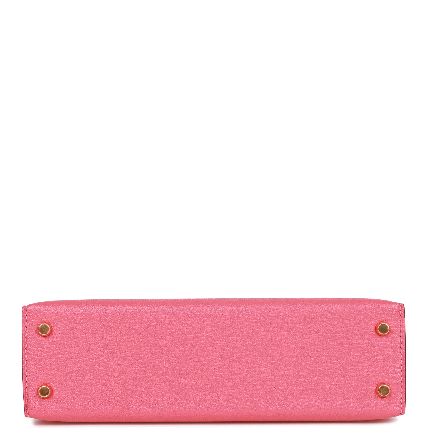 This Kelly, in the Sellier style, is in Rose Lipstick chevre leather with gold hardware and has tonal stitching, two straps with front toggle closure, single rolled handle and removable shoulder strap.