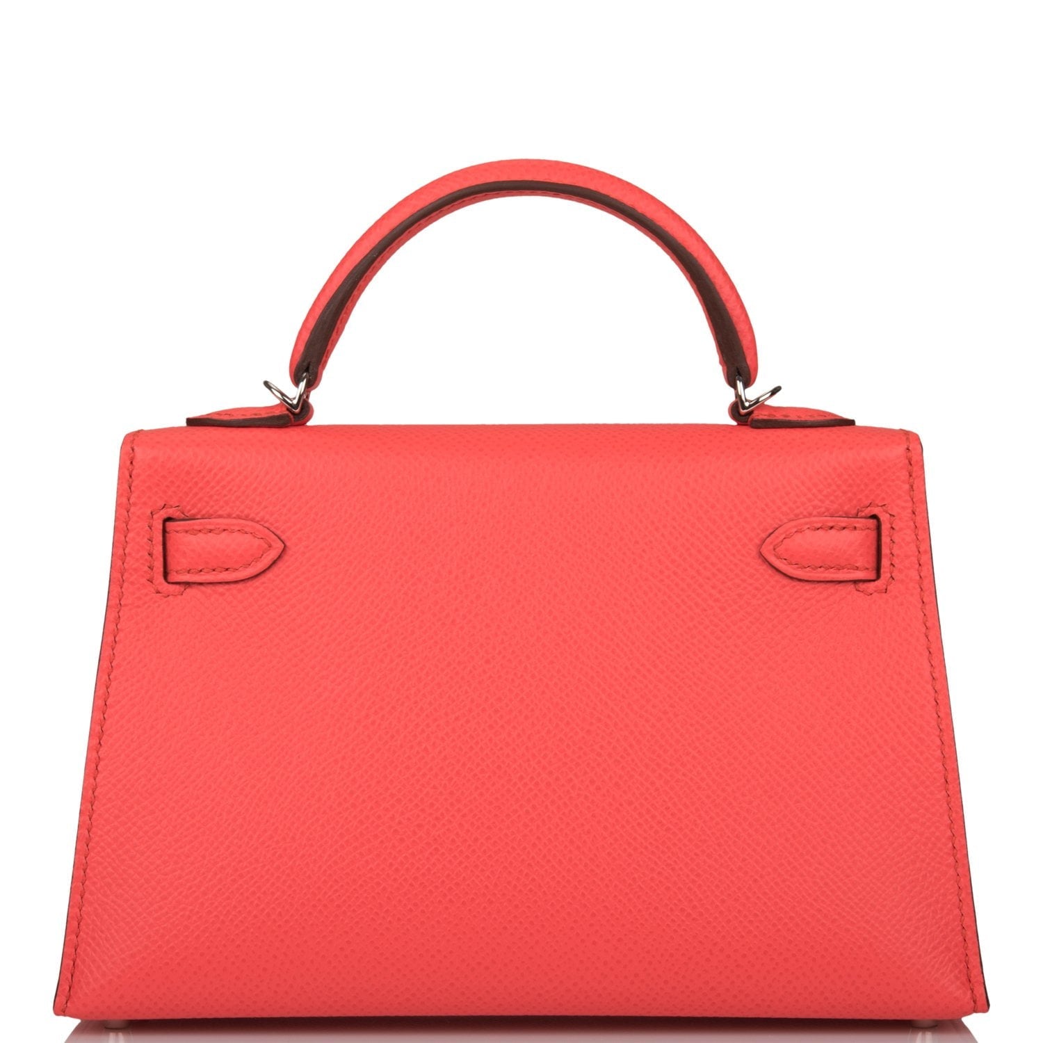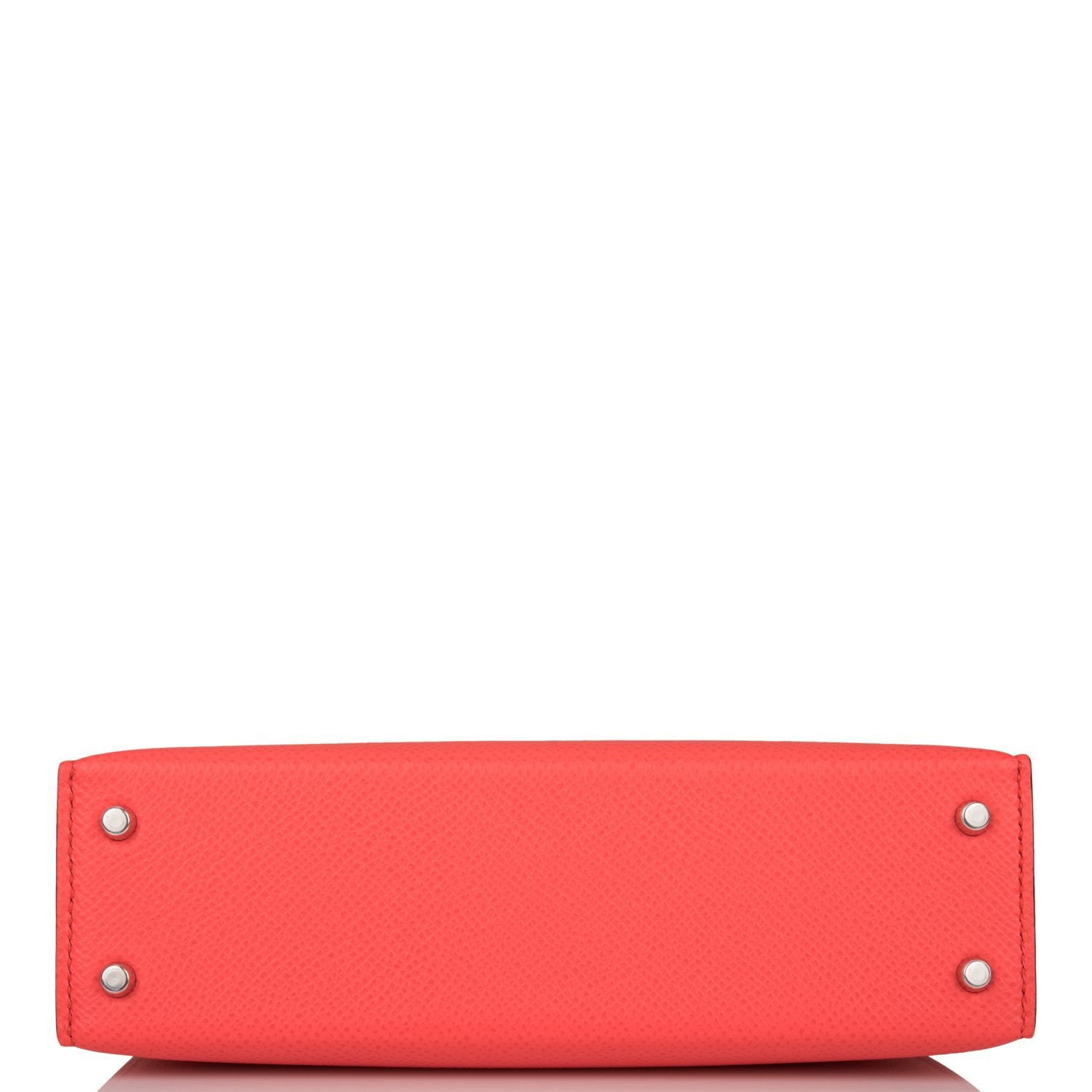 This Kelly, in the Sellier style, is in Rose Texas epsom leather with palladium hardware and has tonal stitching, two straps with front toggle closure, single rolled handle and removable shoulder strap.