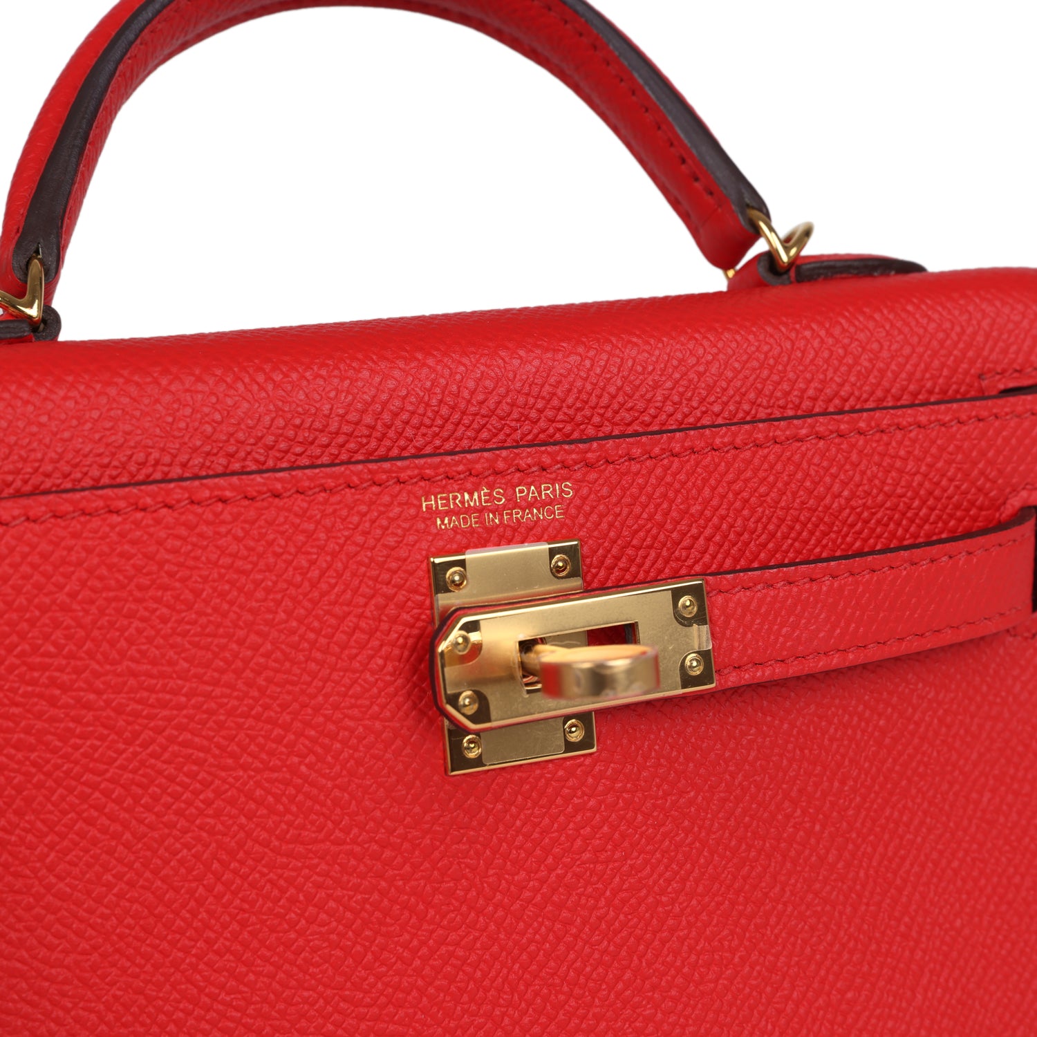 This Kelly, in the Sellier style, is in Rouge De Couer epsom leather with gold hardware and has tonal stitching, two straps with front toggle closure, single rolled handle and removable shoulder strap.