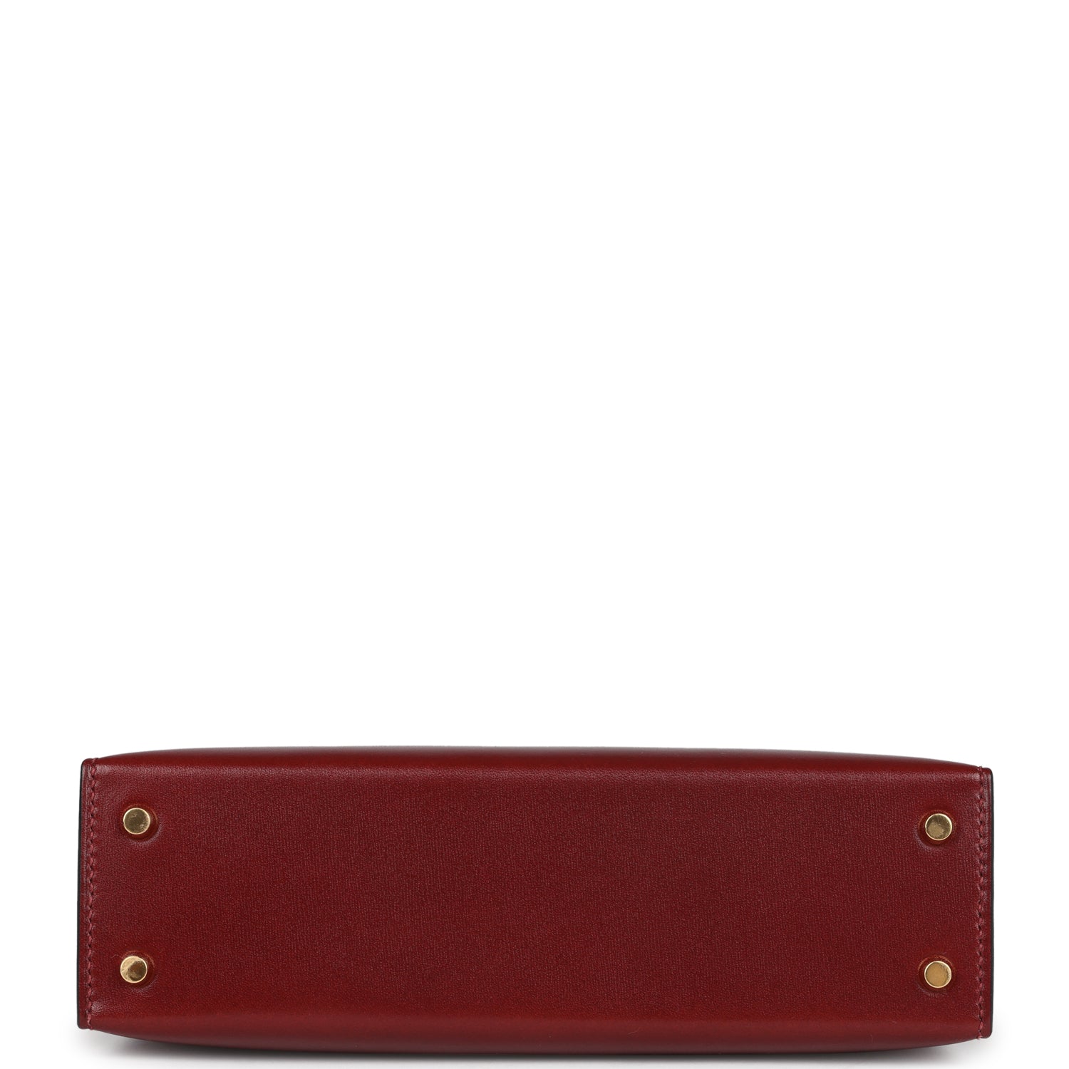 This Kelly, in the Sellier style, is in Rouge H box calfskin leather with gold hardware, and features tonal stitching, two front straps with front toggle closure, single rolled handle and removable shoulder strap.