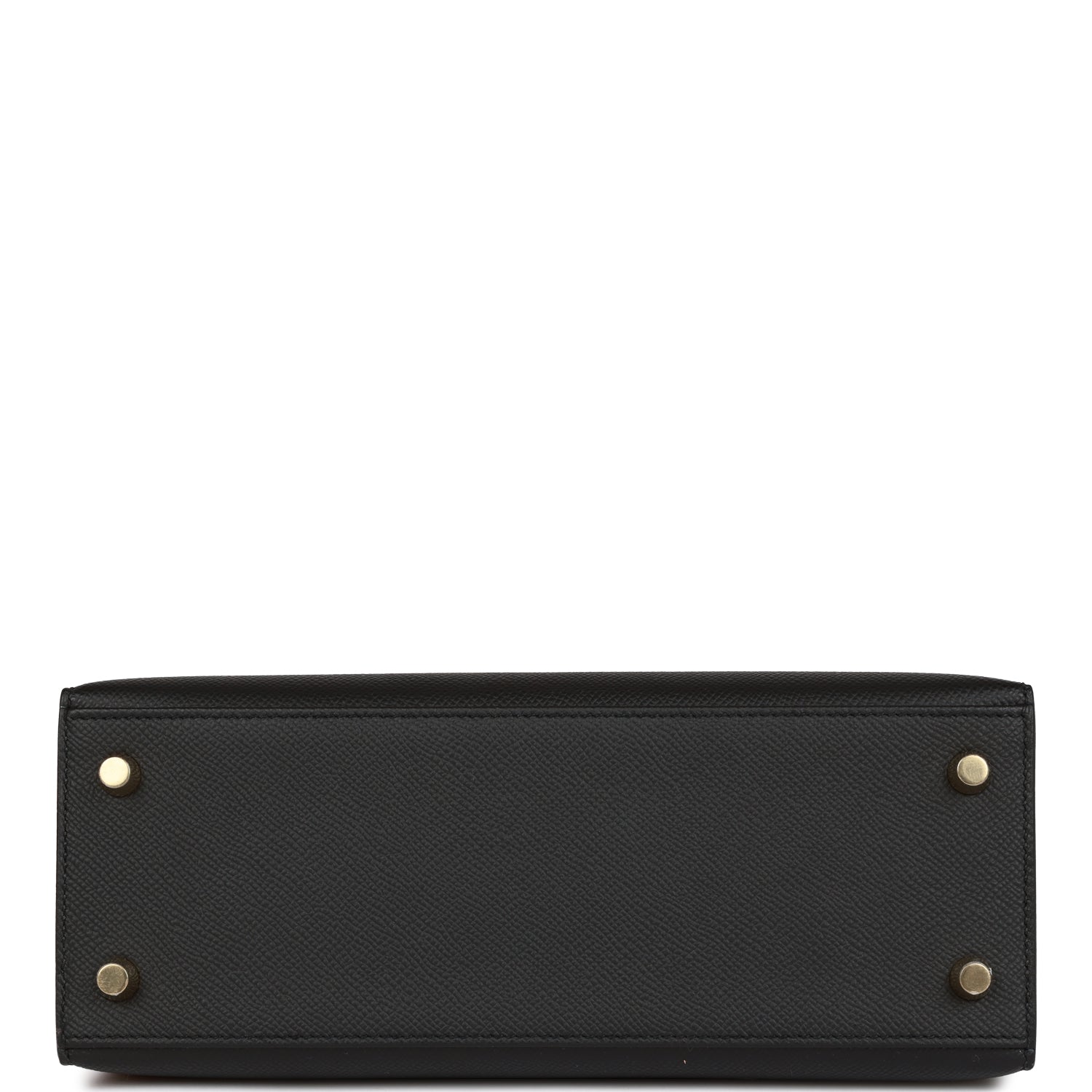 This Kelly, in the Sellier style, is in Black epsom leather with gold hardware and has tonal stitching two straps with front toggle closure, clochette with lock and two keys, a single rolled handle and removable shoulder strap.