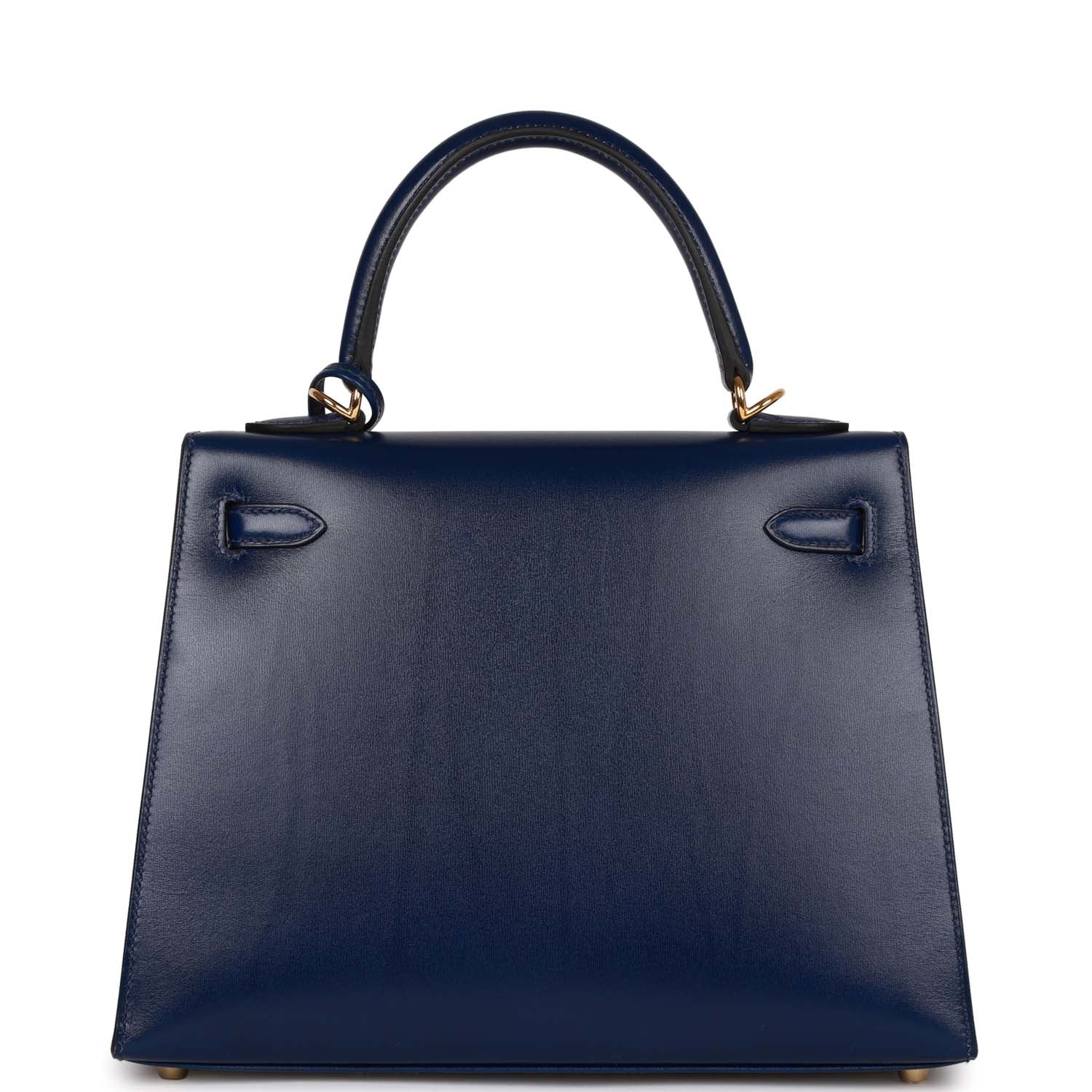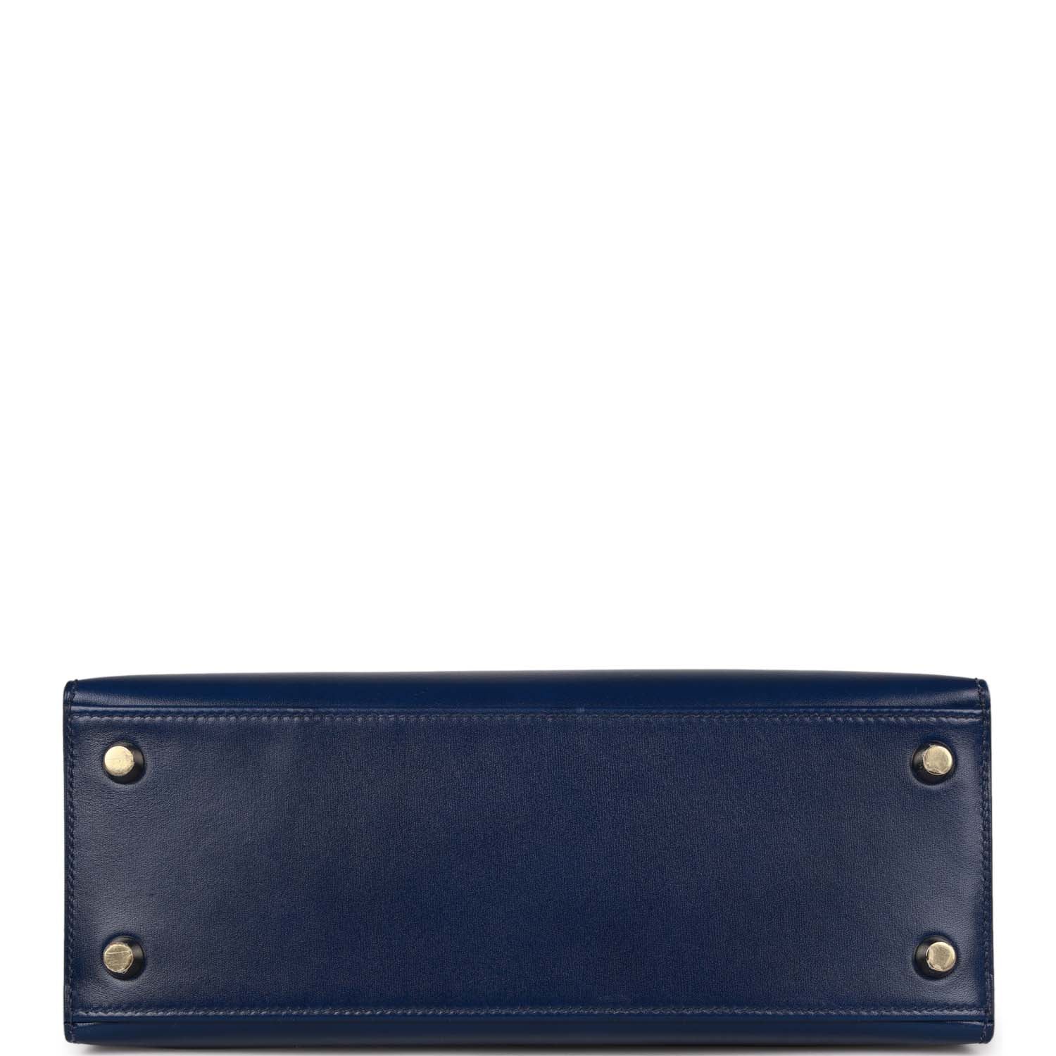 This Sellier Kelly is of Bleu Saphir box leather with gold hardware and has tonal stitching, front flap, two straps with center toggle closure, clochette with lock and two keys, single rolled handle and an optional shoulder strap.