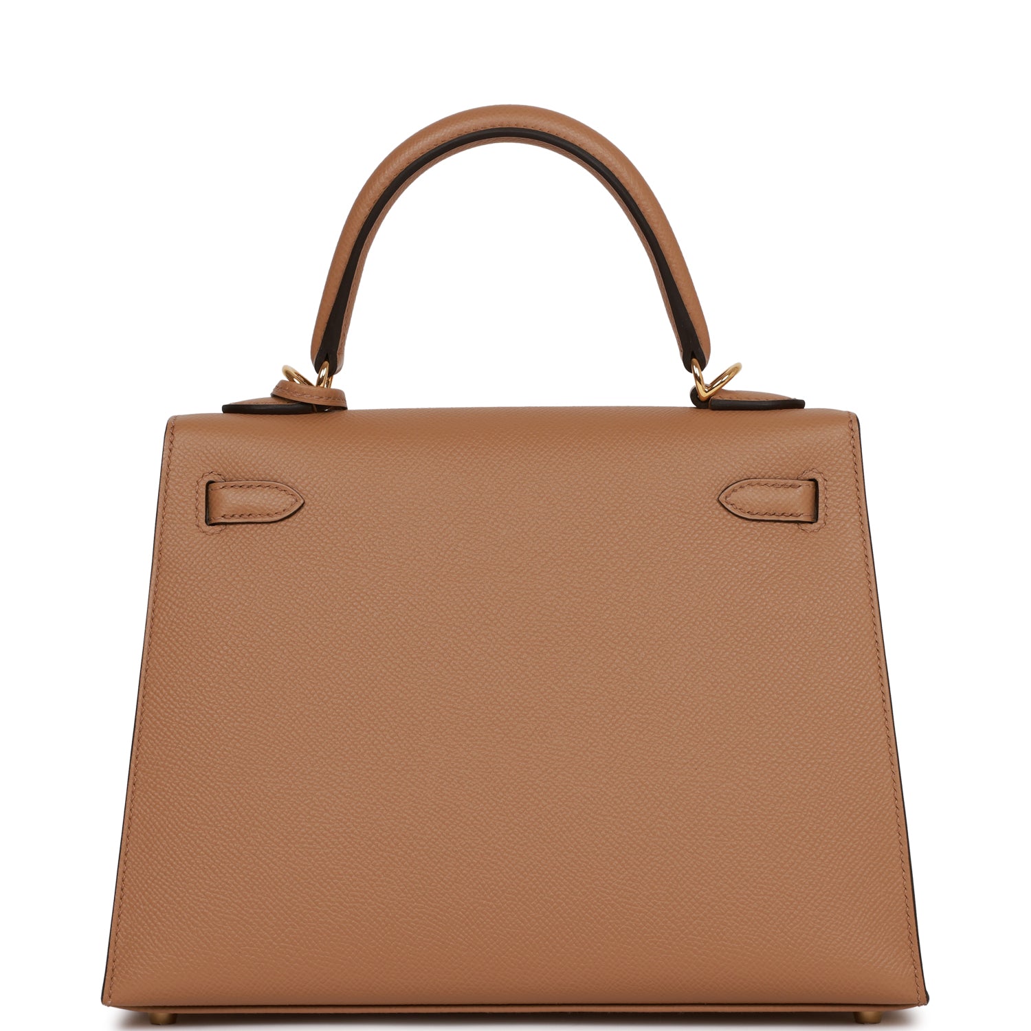 This Kelly, in the Sellier style, is in Chai epsom leather with gold hardware and has tonal stitching, front flap, two straps with center toggle closure, clochette with lock and two keys a single rolled handle and removable shoulder strap.