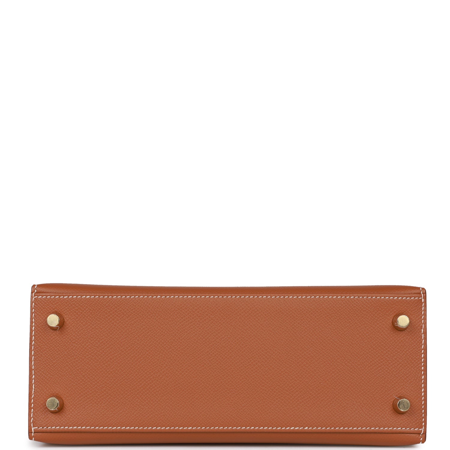 This Kelly, in the Sellier style, is in Gold epsom leather with gold hardware, contrast stitching, front flap with two straps, front toggle closure, clochette with lock and two keys, single rolled handle, and a removable shoulder strap.z