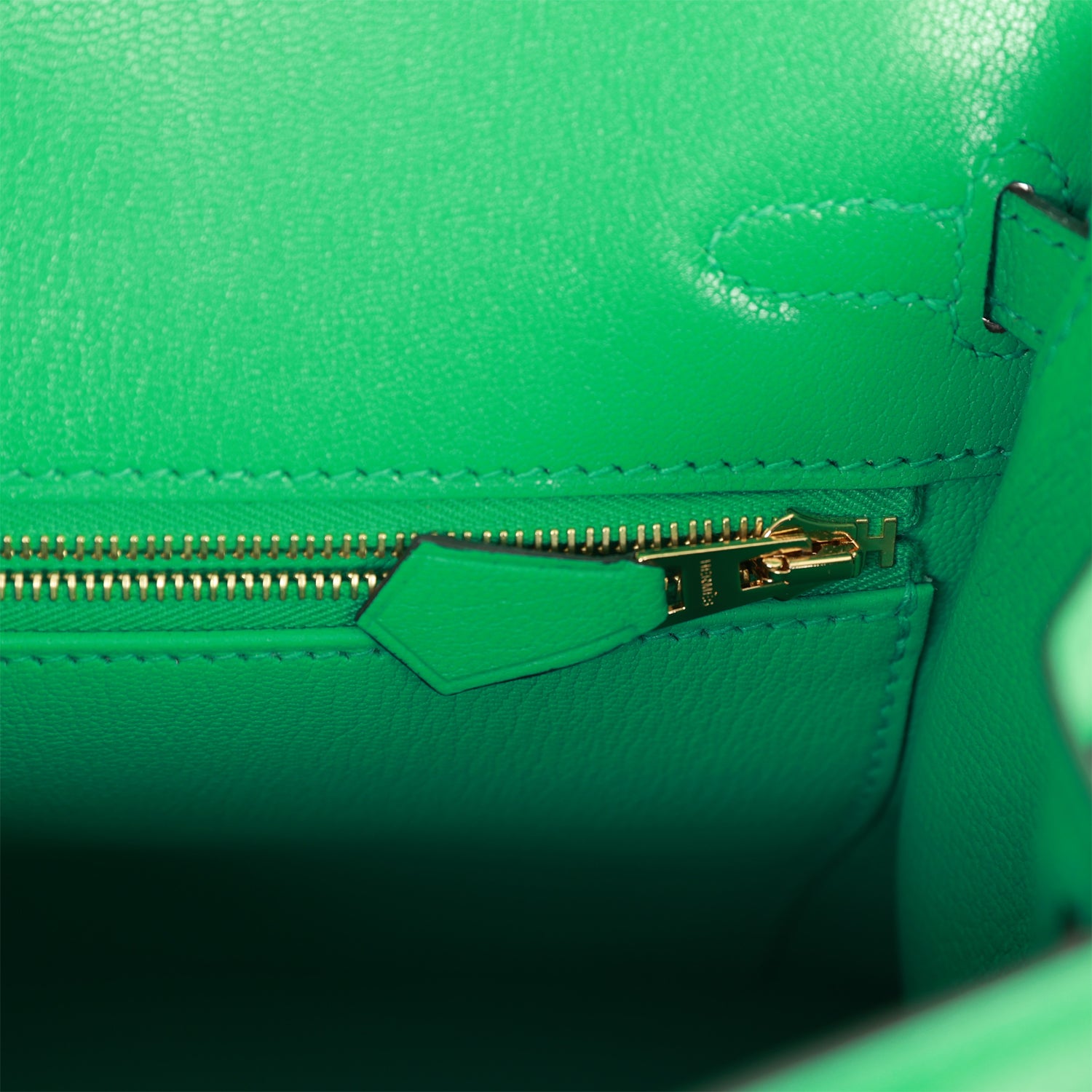 The interior is lined with Menthe chevre and has one zip pocket with an Hermes engraved pull and one open pocket on the opposite side.