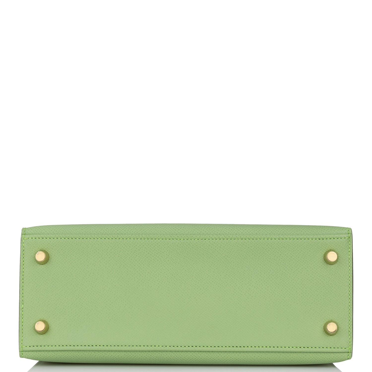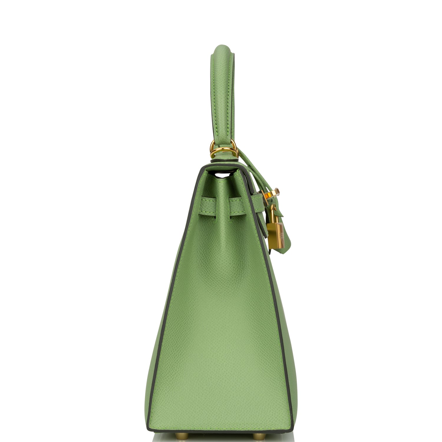 This Kelly, in the Sellier style, is in Vert Criquet epsom leather with gold hardware and has tonal stitching, two straps with front toggle closure, clochette with lock and two keys, single rolled handle and removable shoulder strap.