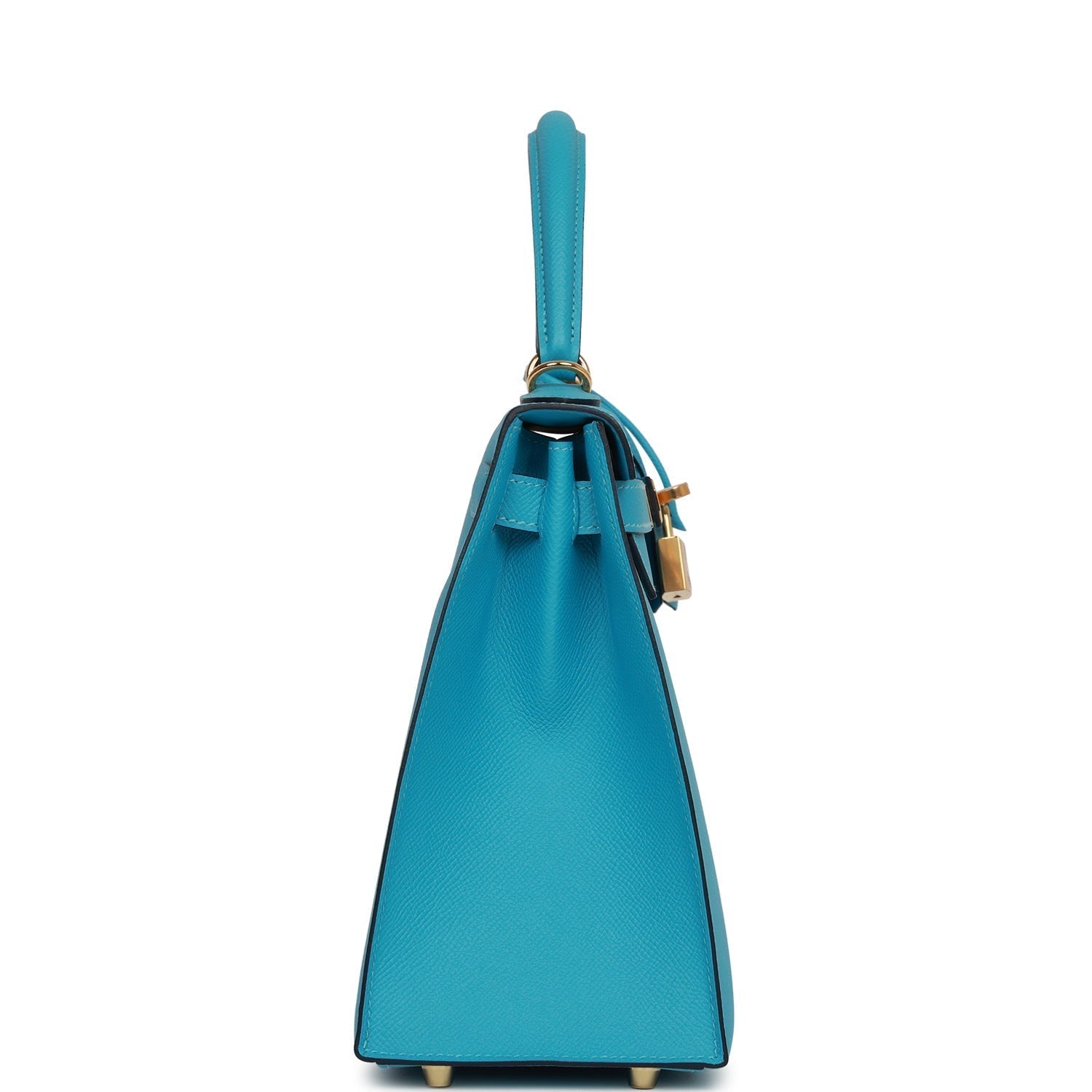This Kelly, in the Sellier style, is in Bleu du Nord epsom leather with gold hardware and has tonal stitching, front flap, two straps with center toggle closure, clochette with lock and two keys a single rolled handle and removable shoulder strap.