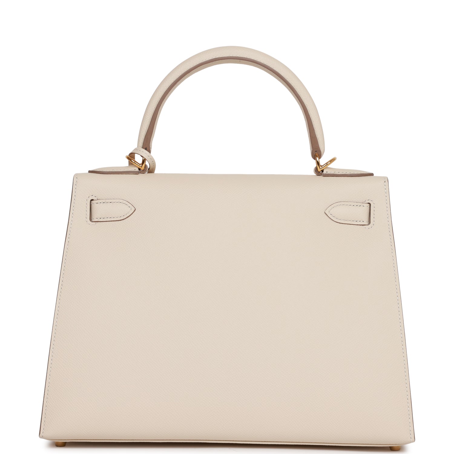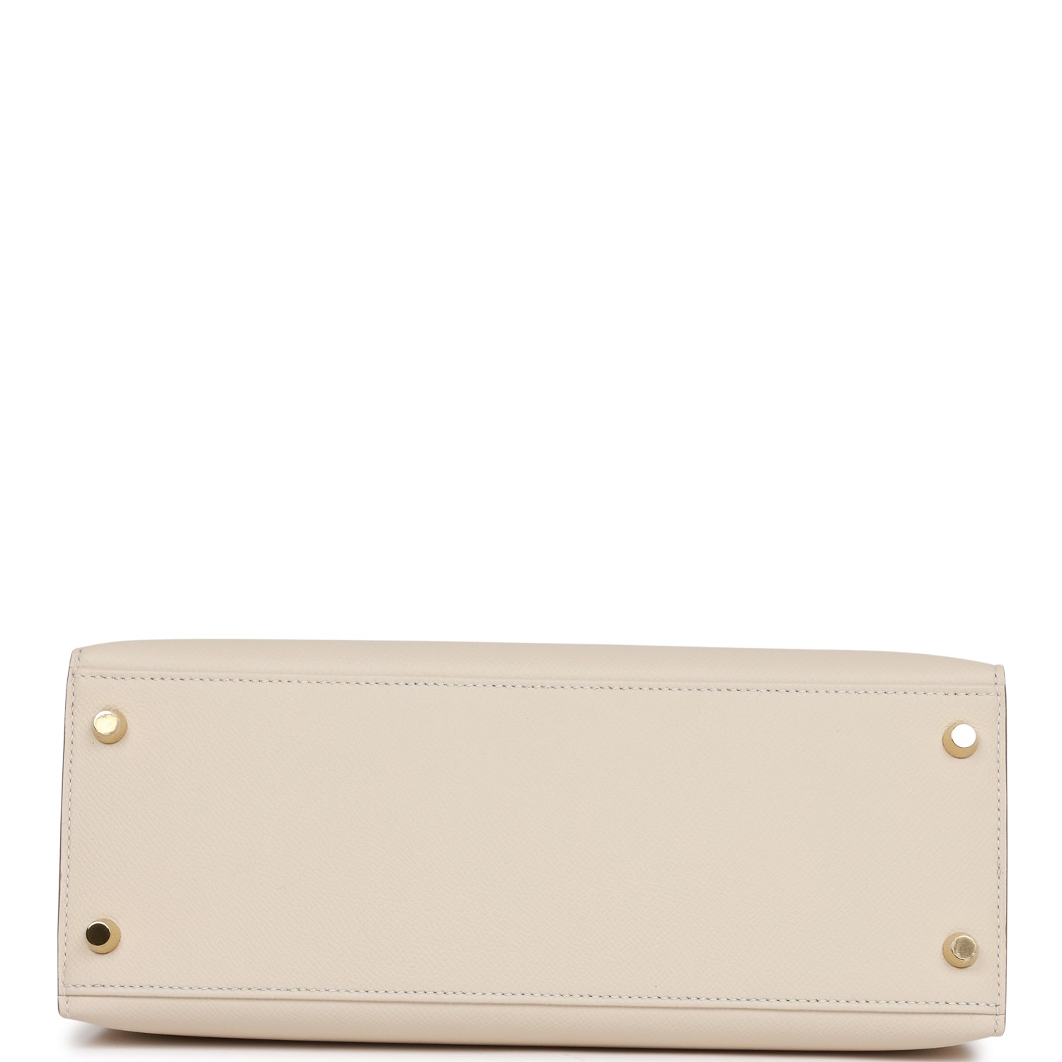 This Kelly, in the Sellier style, is in Craie epsom leather with gold hardware and has tonal stitching, two straps with front toggle closure, clochette with lock and two keys, single rolled handle and removable shoulder strap.