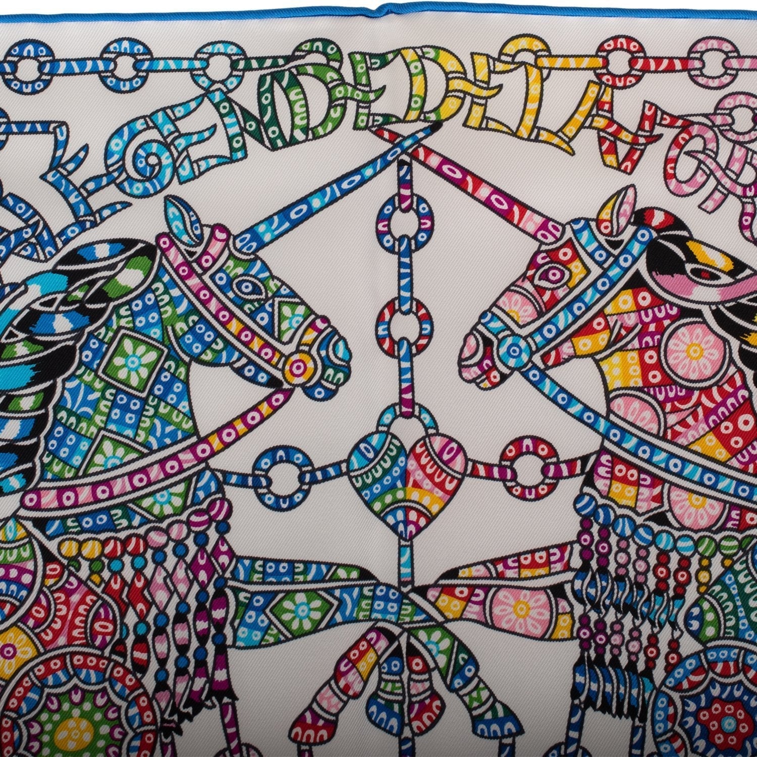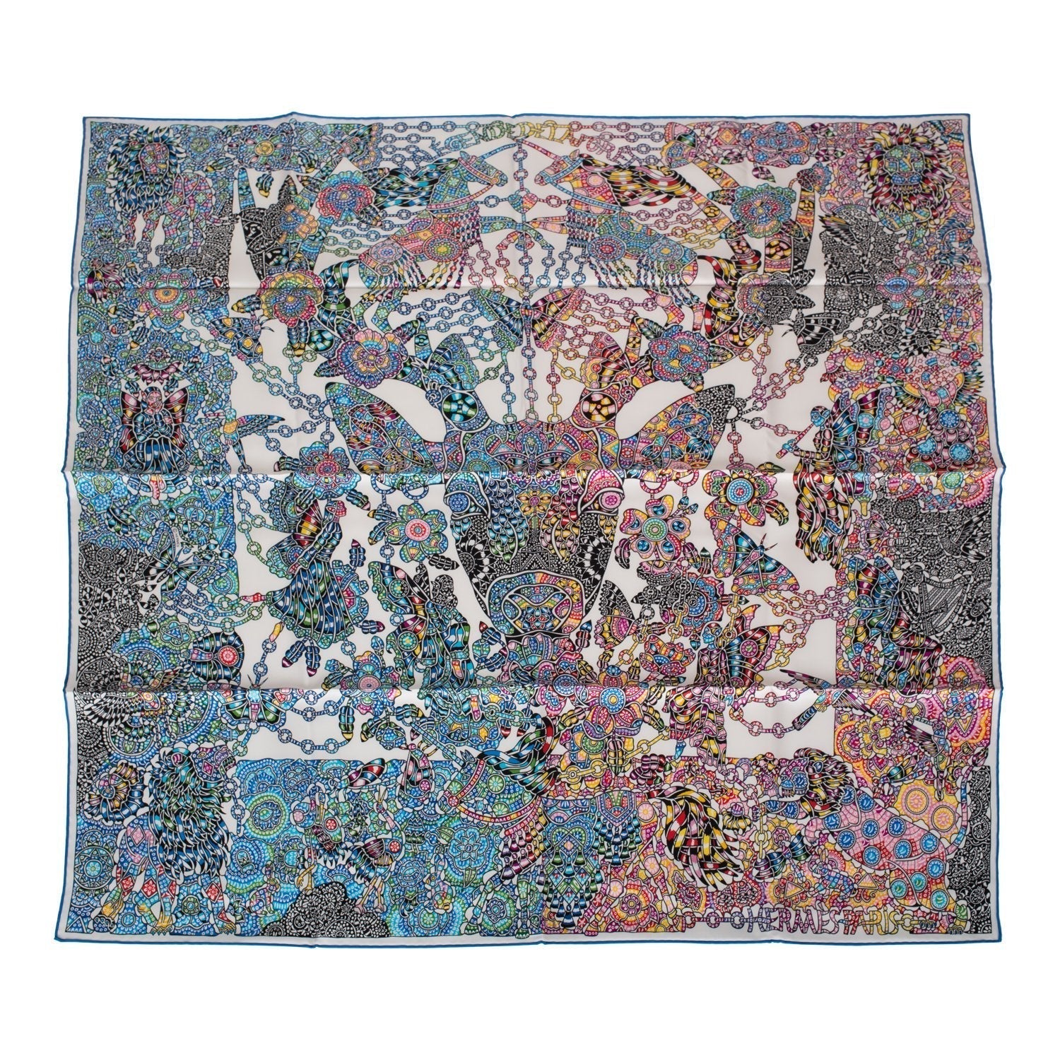 Hermes "La Legende de la Foret" White Silk Twill Scarf 90cm