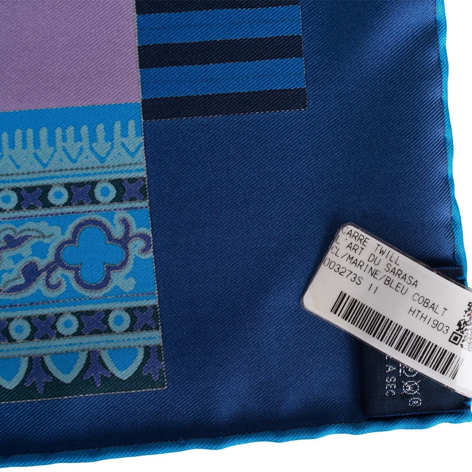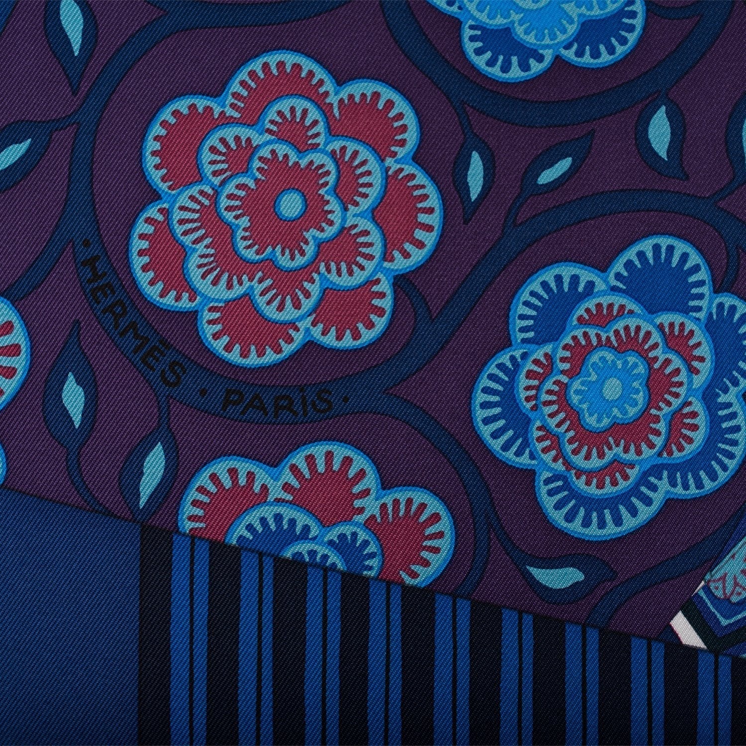 Hermes "L'Art du Sarasa" Ciel Silk Twill Scarf 90cm