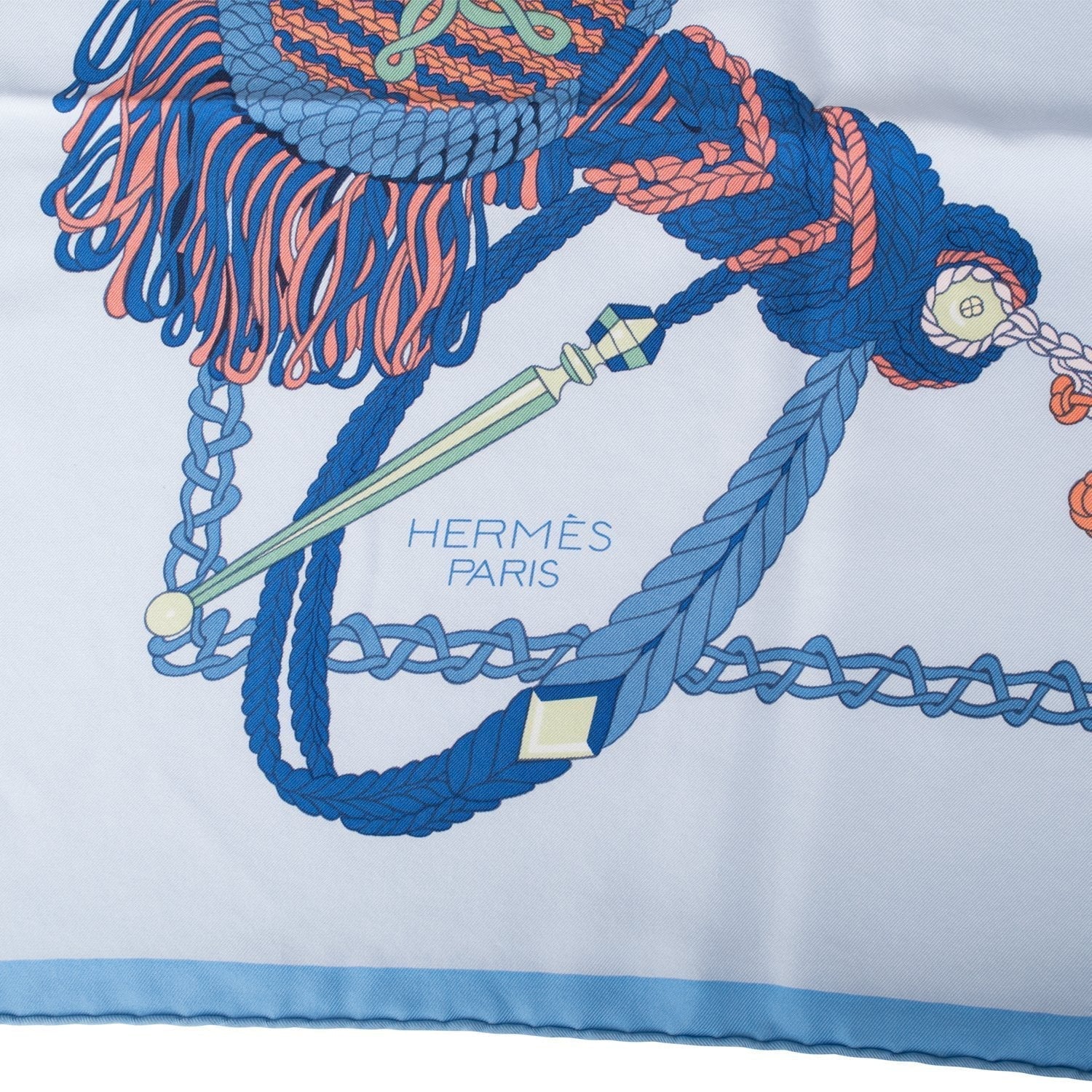 Hermes "Le Timbalier" Bleu Ciel Silk Twill Scarf 90cm