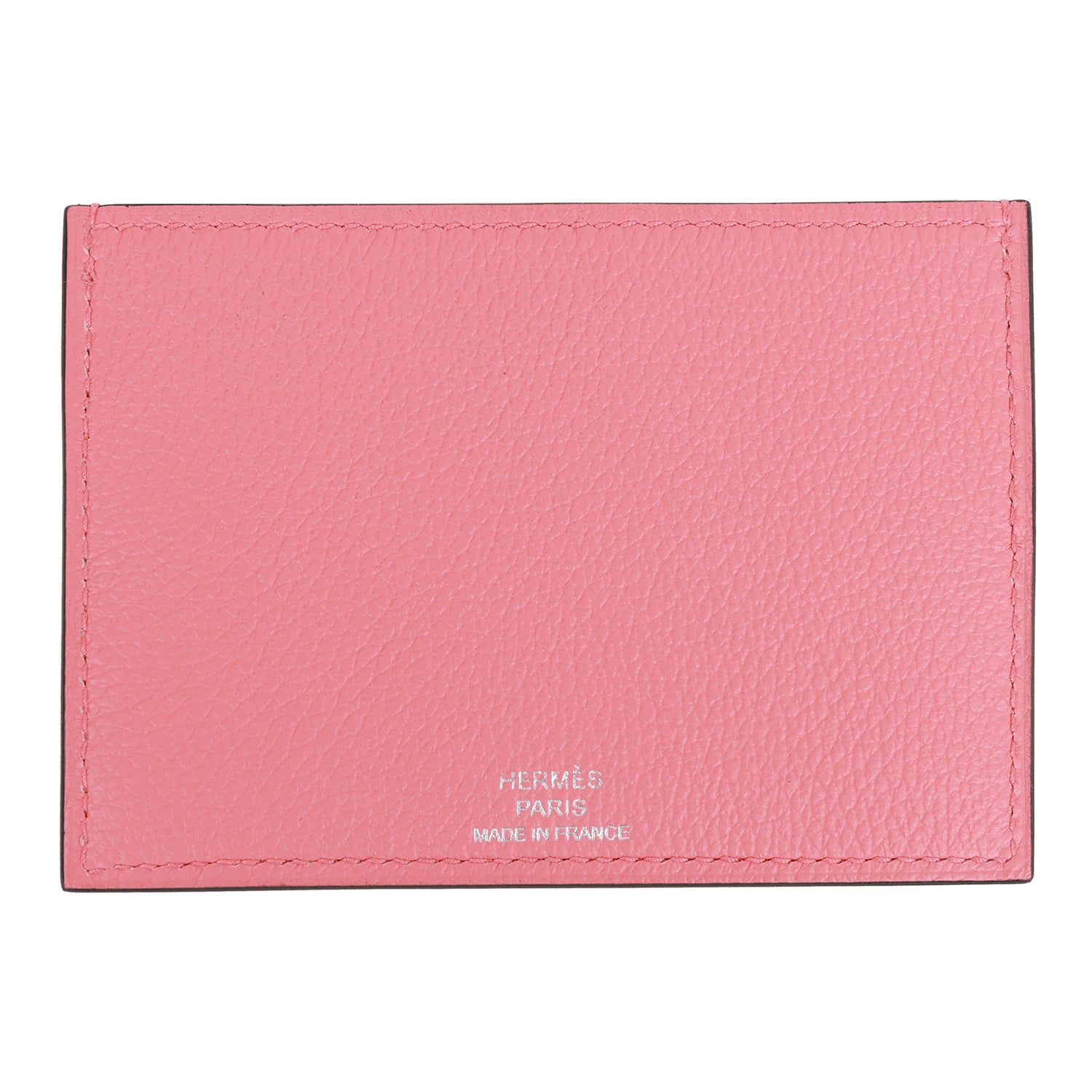 This Les Petits Chevaux card holder is in Rose D'ete, Brique, Ambre and Rouge H in multiple leathers and has tonal stitching with three card slots.
