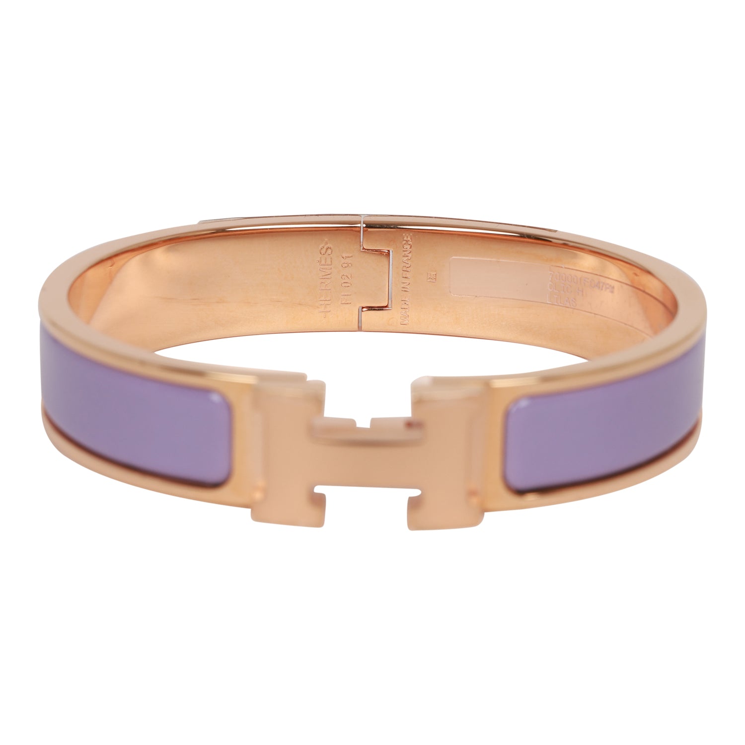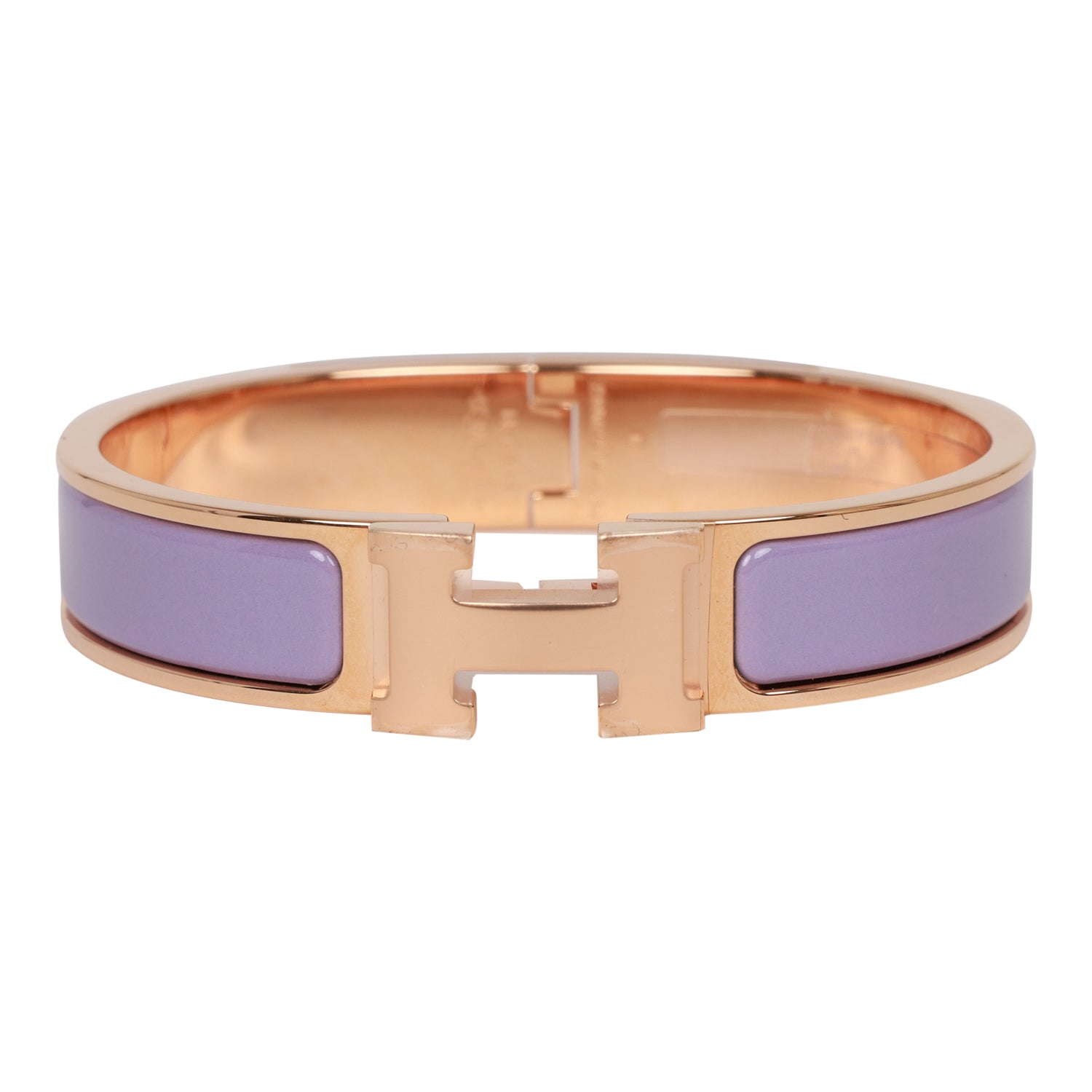 Hermes narrow Clic Clac H bracelet in Lilac enamel with rose gold plated hardware in size PM.