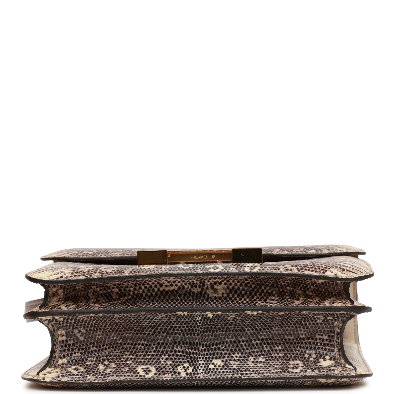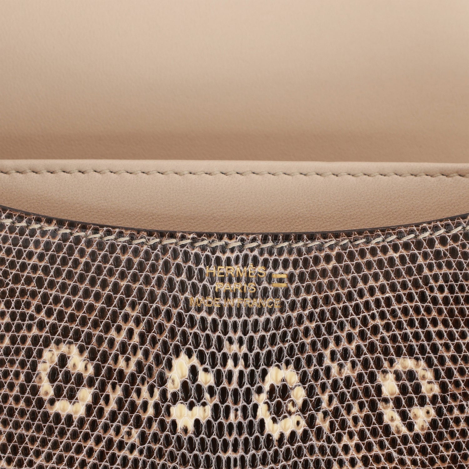 This Mini Constance is in Ombre varanus salvator lizard with gold hardware and has tonal stitching, gold "H" snap lock closure and adjustable shoulder strap.