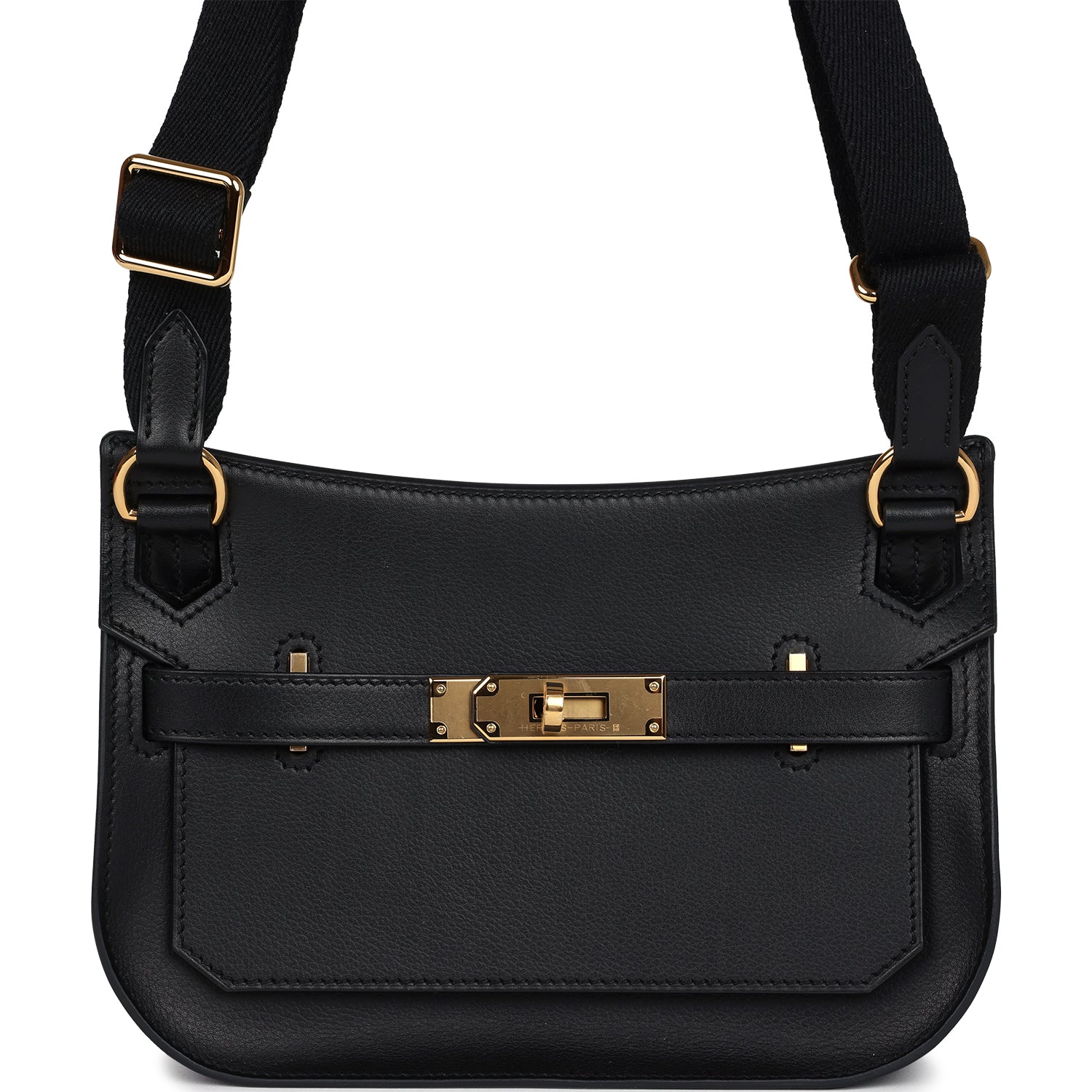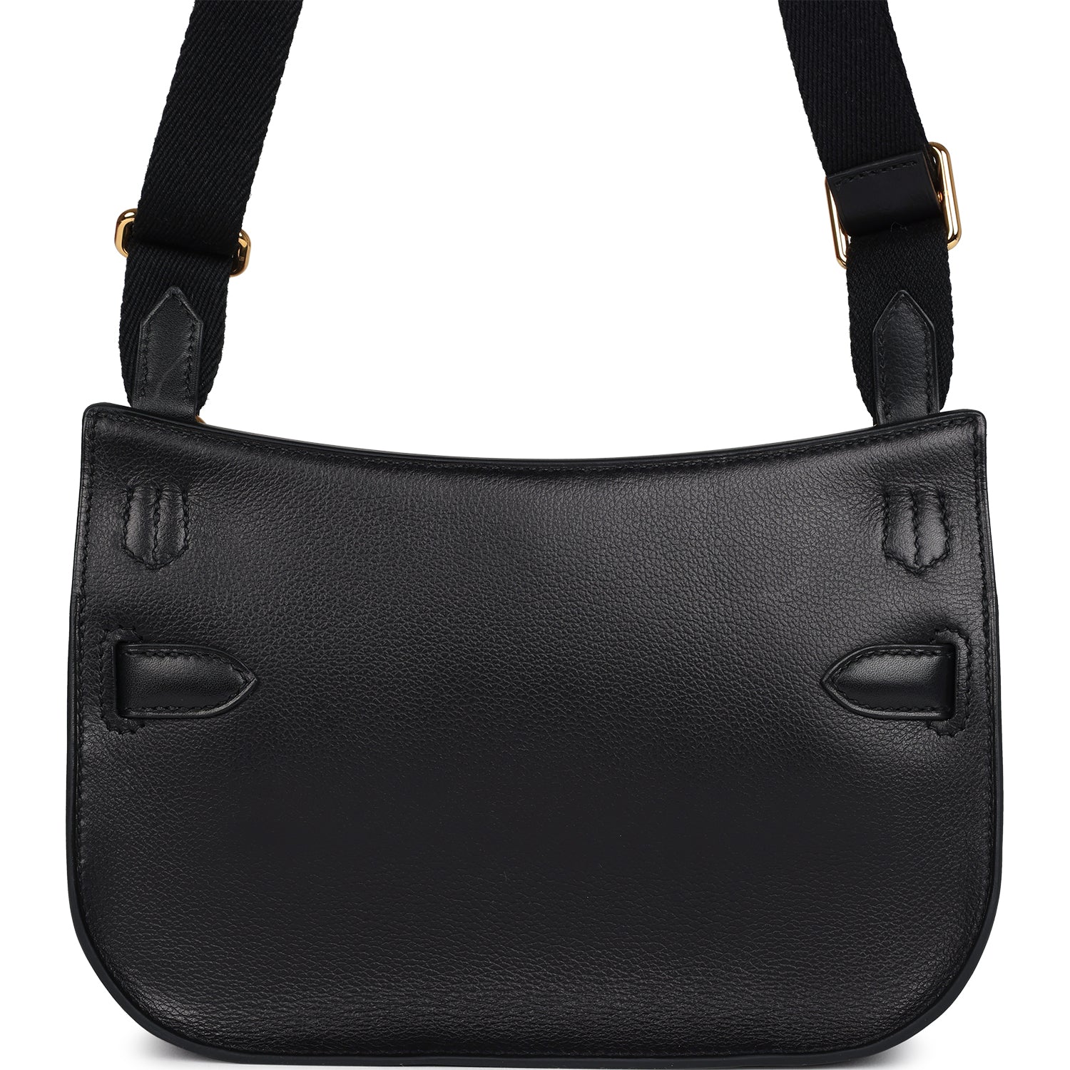 This Jypsiere Mini is in Black evergrain leather with gold hardware, tonal stitching, single flap, two pull straps, turnlock closure, and a flat wool shoulder strap.
