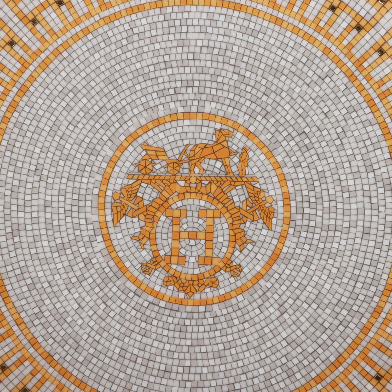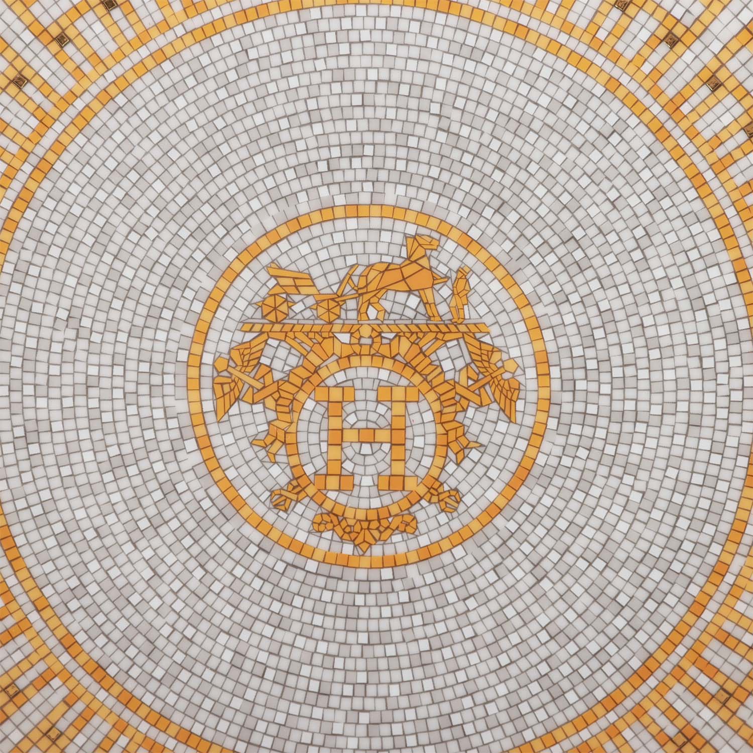 Hermes "Mosaique Au 24" dessert plate set in gold and grey porcelain.